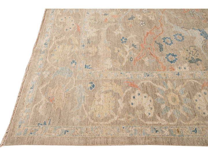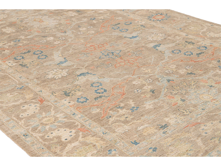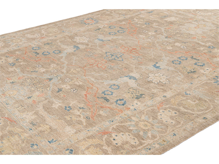 Contemporary Sultanabad Tan Handmade Geometric Floral Wool Rug