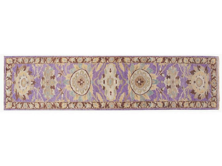 A beautiful 21st century modern Persian Sultanabad, a hand-knotted runner with a purple field, and multi-color accents in all-over floral design.