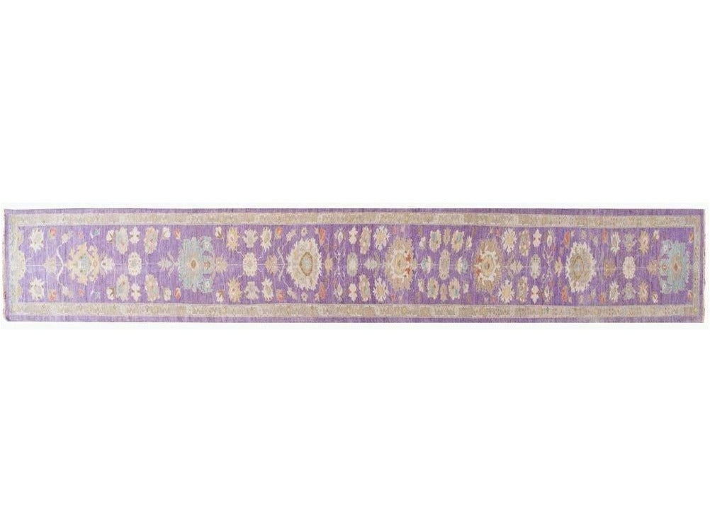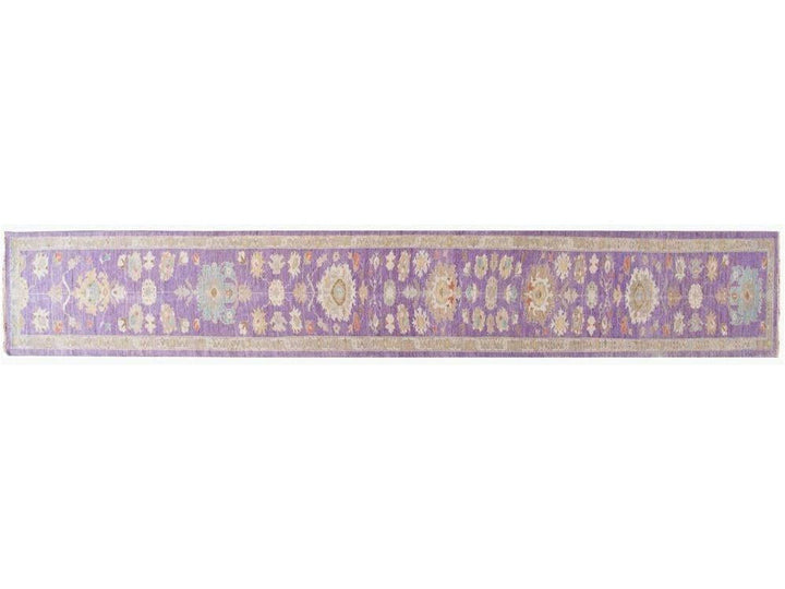 A beautiful 21st century modern Persian Sultanabad, a hand-knotted rug with a purple and tan motif and border.