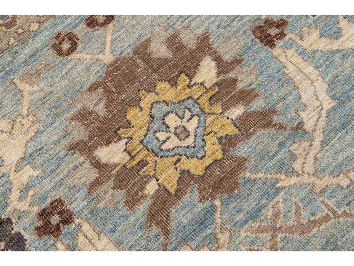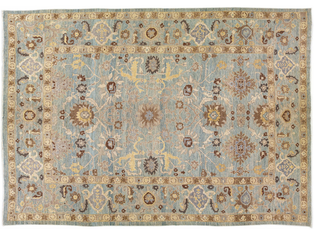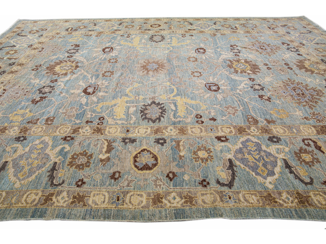 Modern Oversize Sultanabad Handmade Floral Blue Wool Rug