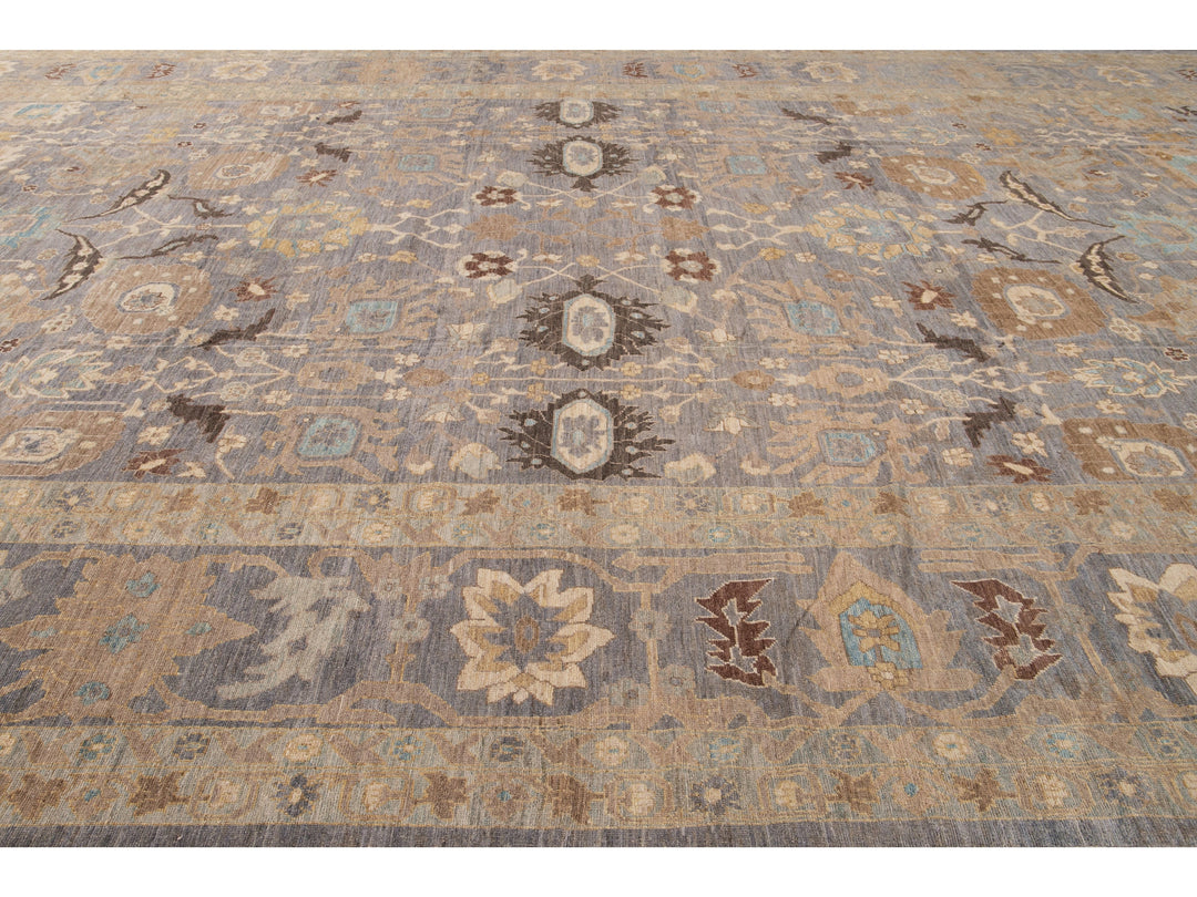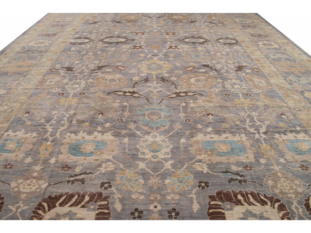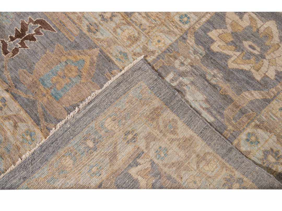 Beautiful Sultanabad rug with a gray field and beige accents with an all-over floral design.