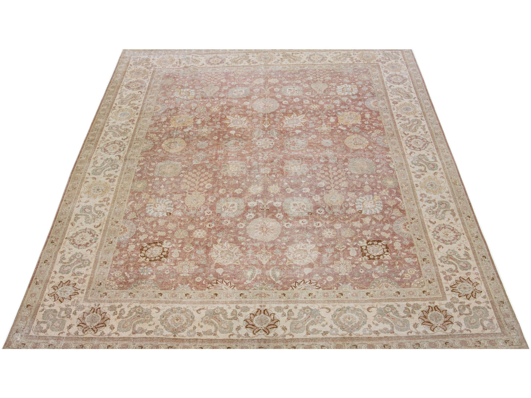 Beautiful antique Tabriz hand-knotted wool rug with a rust color field. This Persian rug has gray, green, and goldenrod accents in a gorgeous all-over floral design.