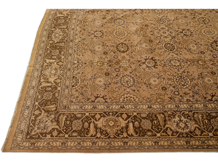 Oversize Antique Tabriz Handmade Allover Designed Brown Persian Wool Rug