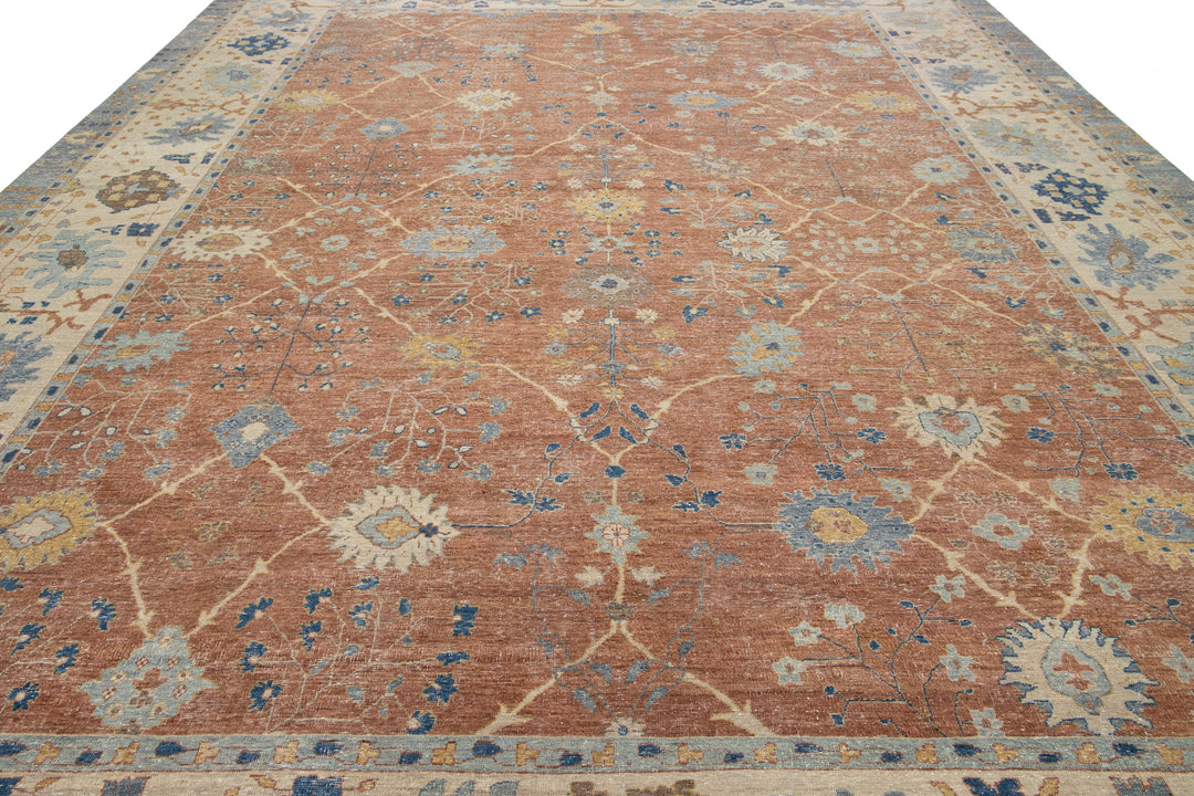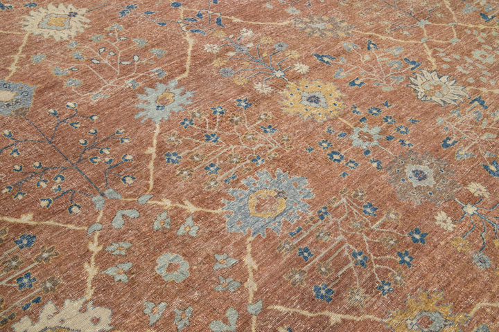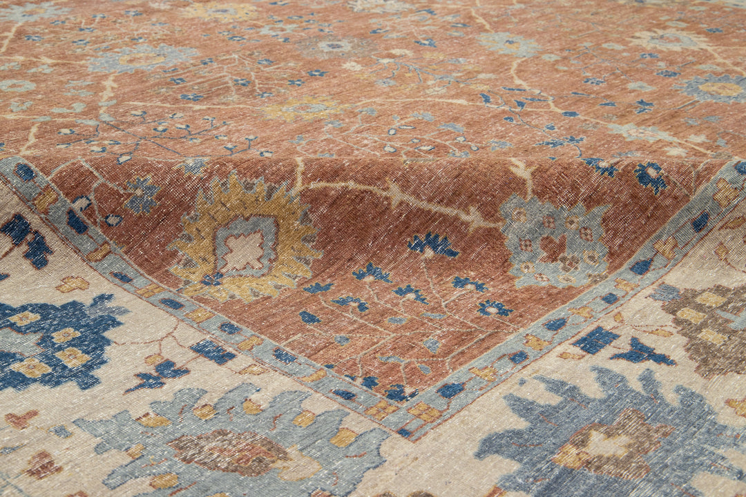 Apadana's Artisan Line offers a reimagined take on antique rugs, providing an elegant way to infuse any space with a striking antique aesthetic. Each rug in this collection is uniquely crafted, transforming the traditional appearance of antique rugs. Every piece from our Artisan line is meticulously handwoven. This custom Tabriz-style rug showcases a stunning all-over design against a rich brown field. This rug measures 12'6" x 17'.