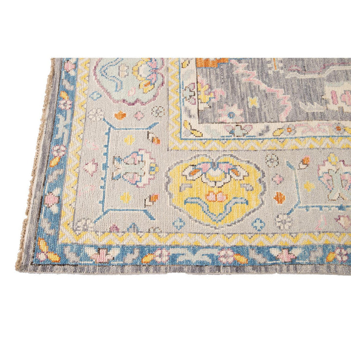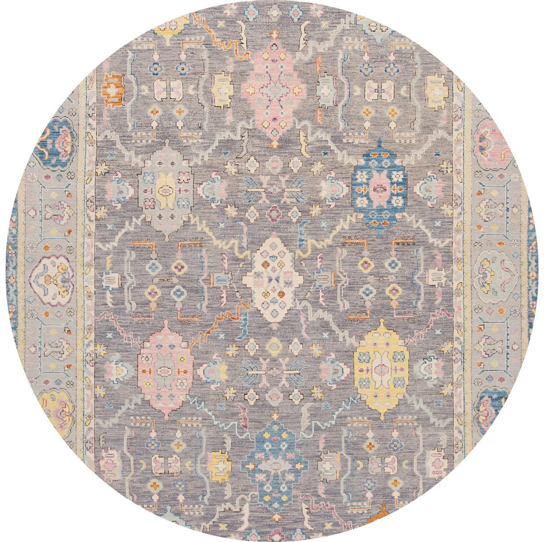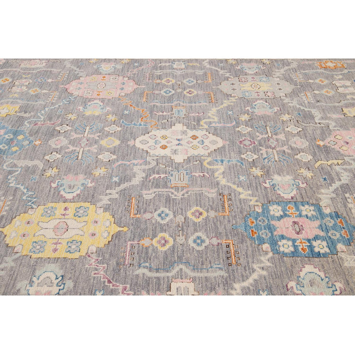 Beautiful contemporary Oushak rug, hand-knotted wool with a gray field, and multicolor accents in all-over geometric design,