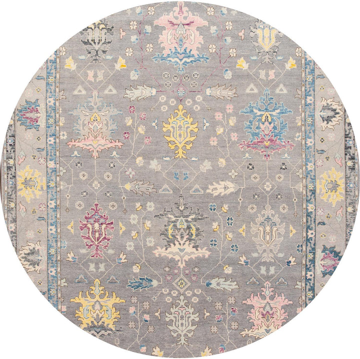 Beautiful contemporary Oushak rug, hand-knotted wool with a gray field, and multicolor accents in all-over floral design,