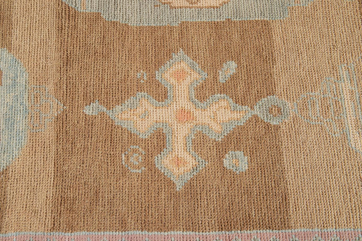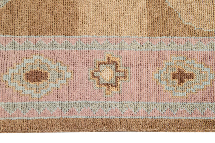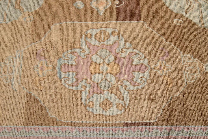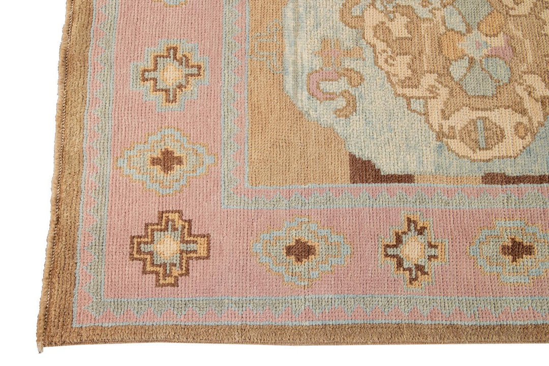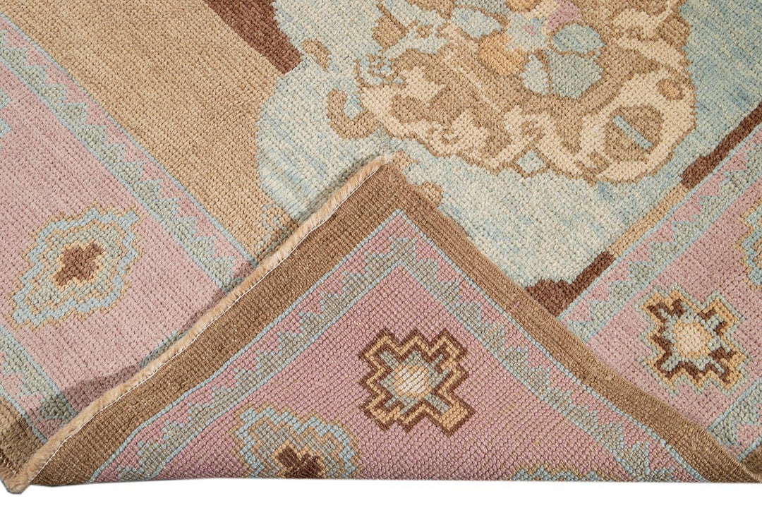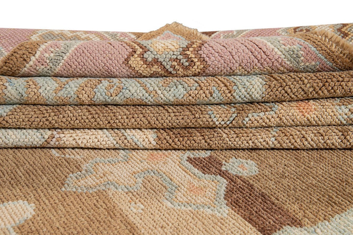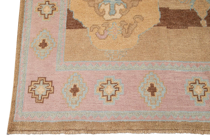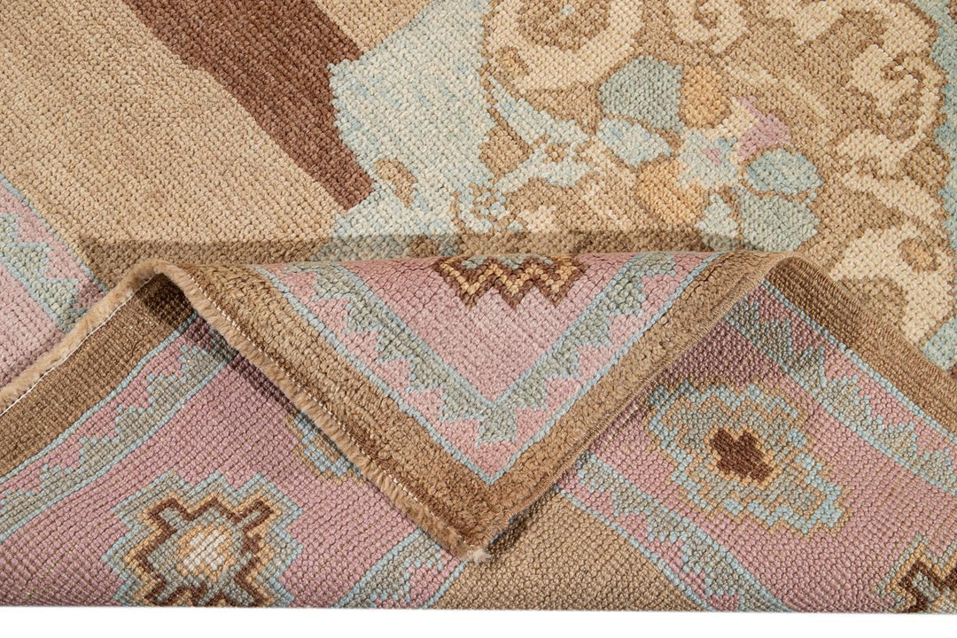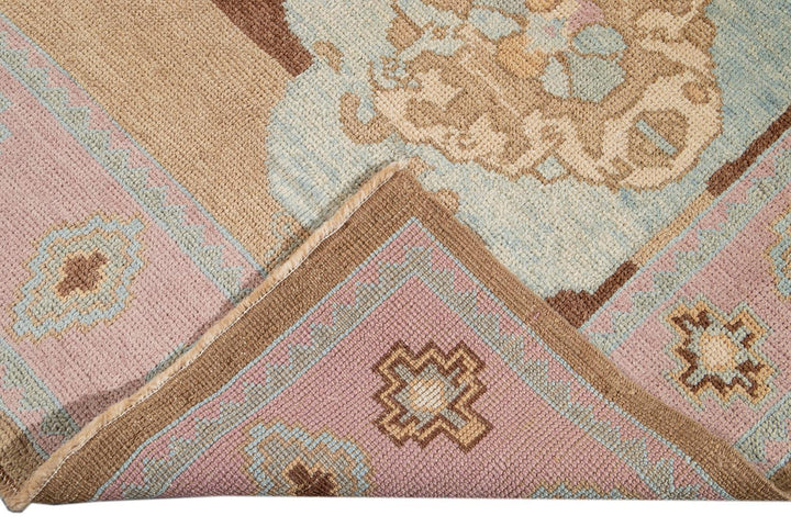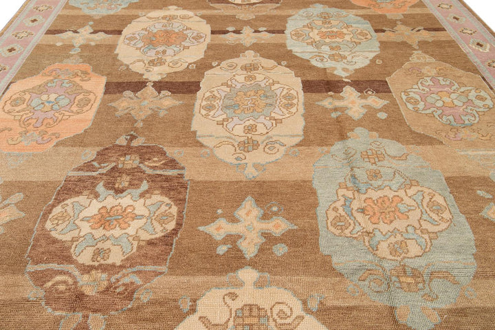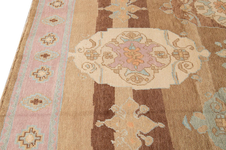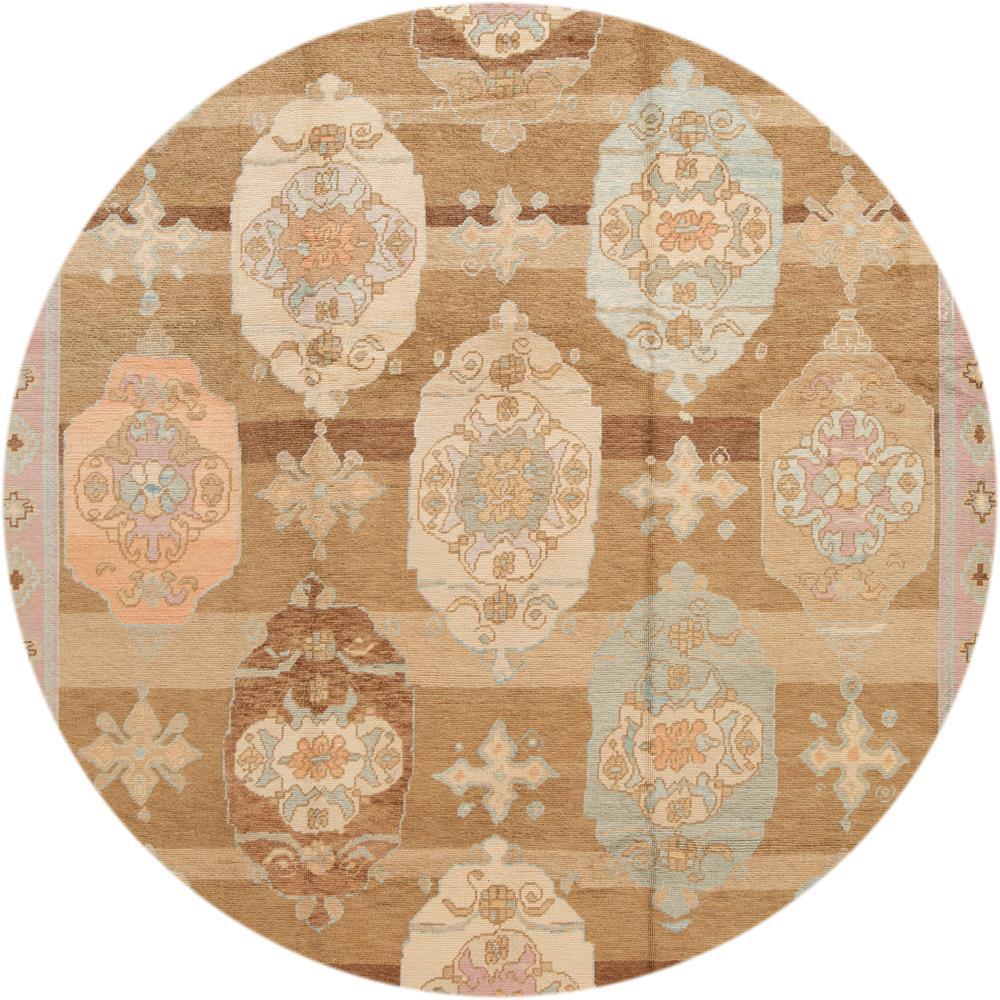 Beautiful contemporary Turkish Kars rug, hand knotted wool with a rose frame and brown field, multi color accents in an all-over the medallion design.