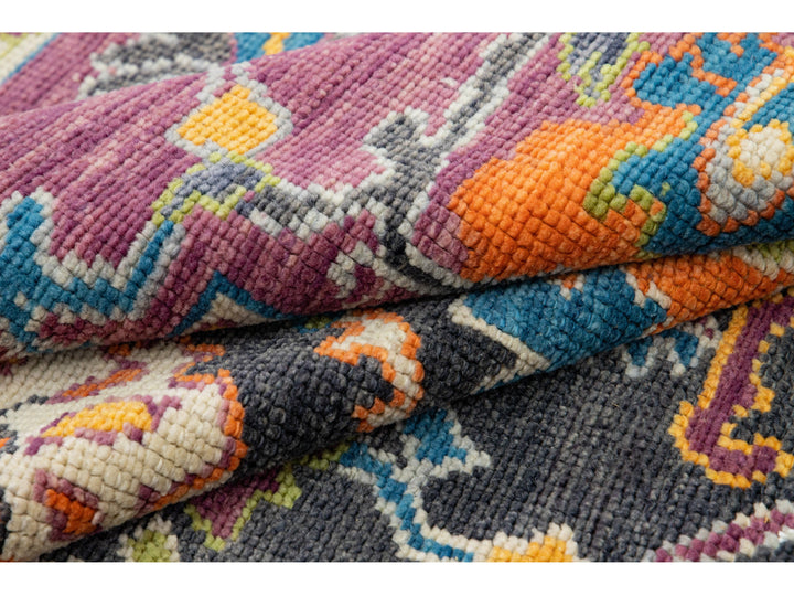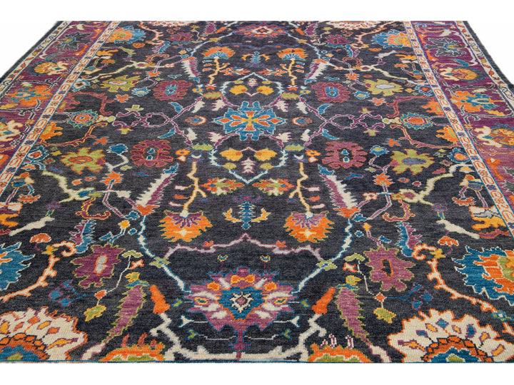 Modern Oushak Handmade Allover Floral Grey and Purple Wool Rug