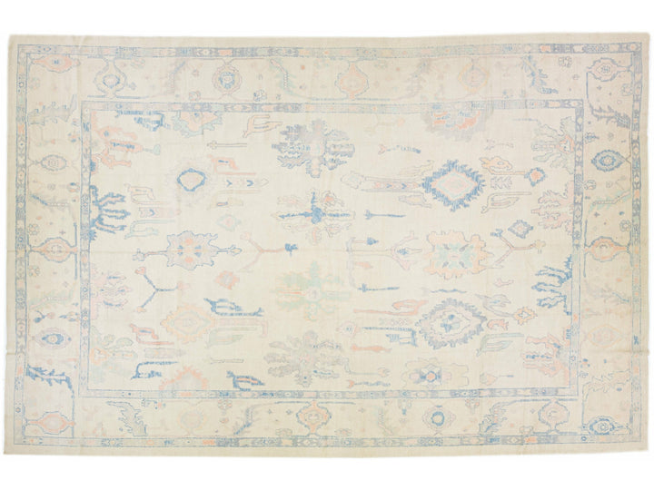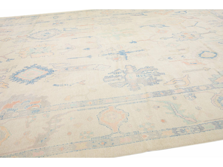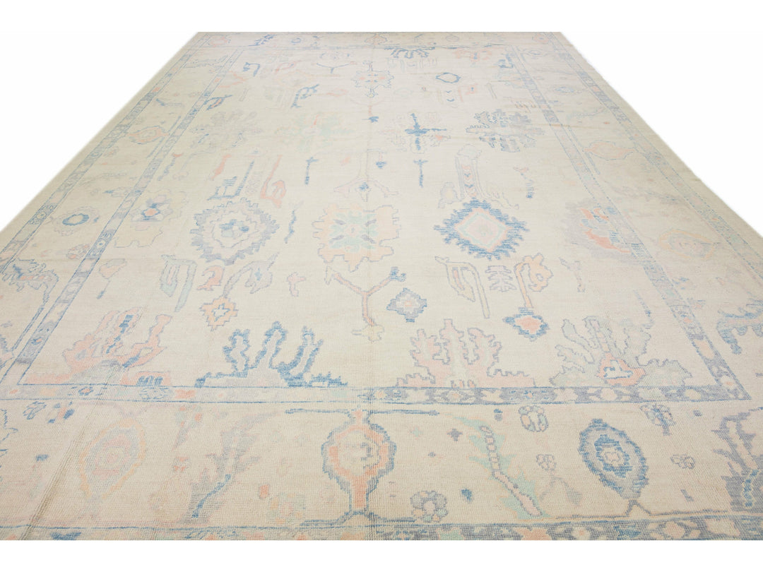 Oversize Modern Turkish Oushak Handmade Floral Wool Rug With Muted Colors