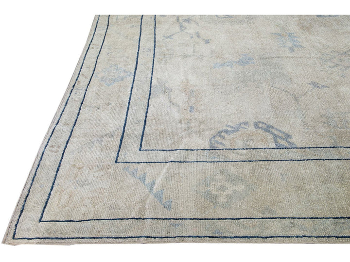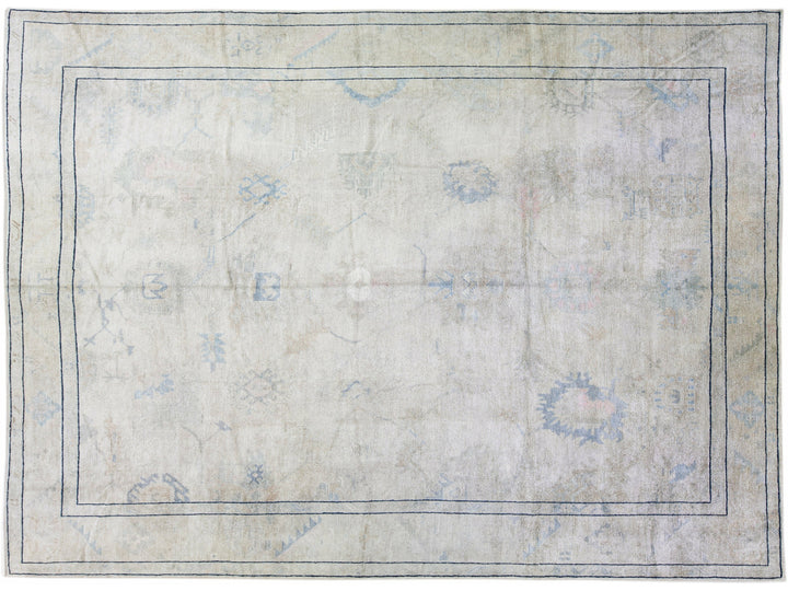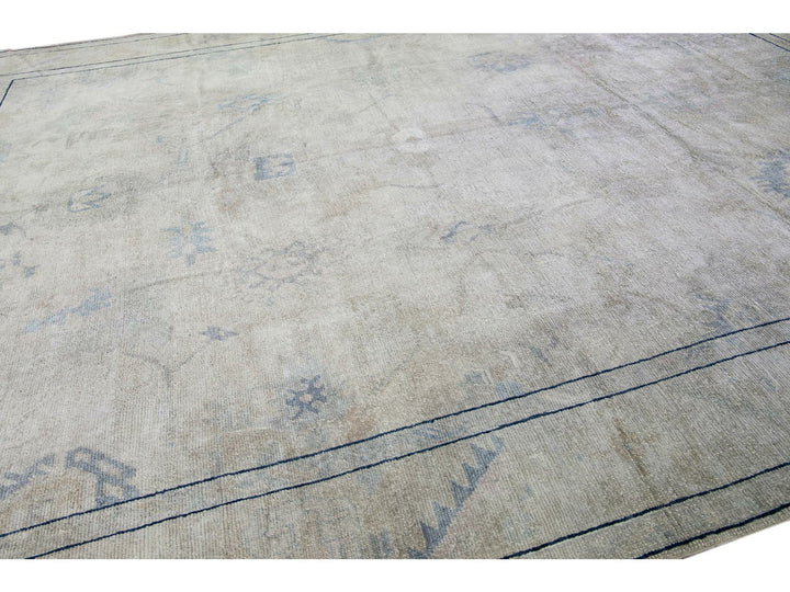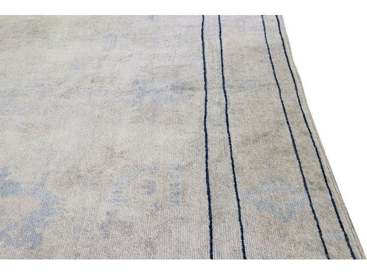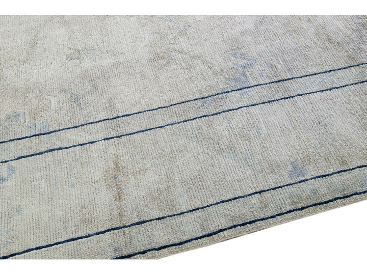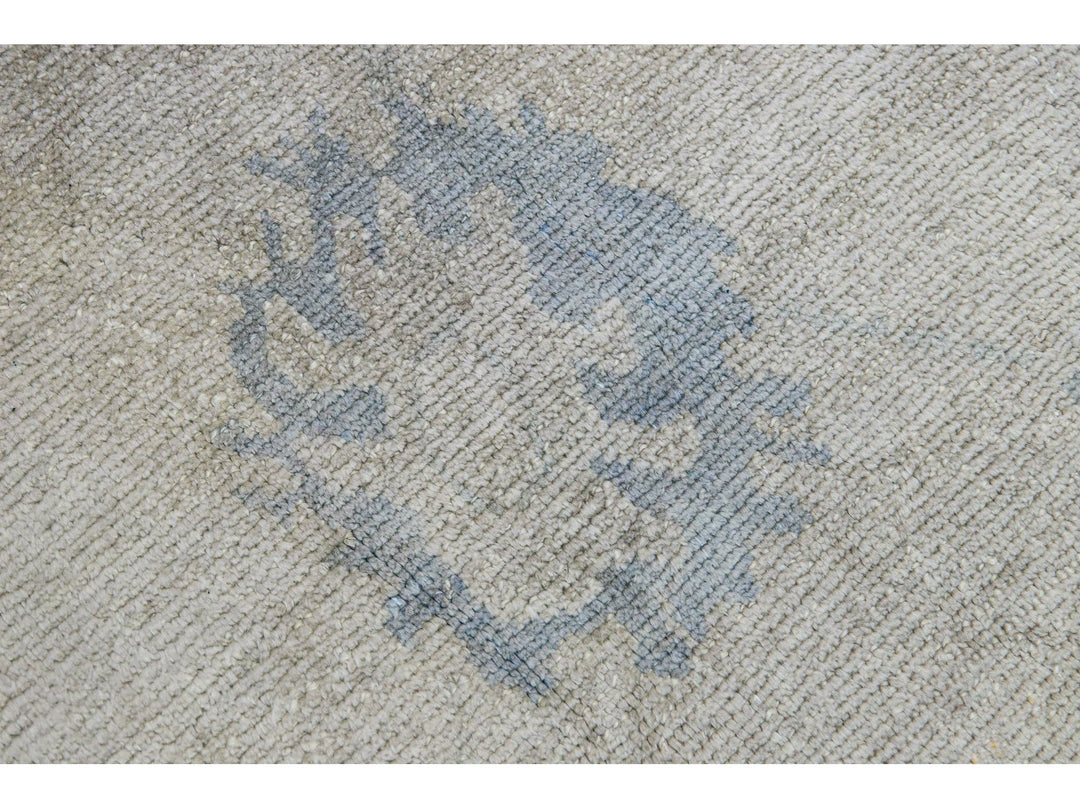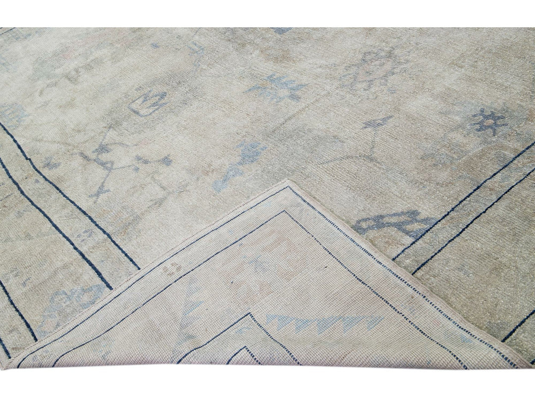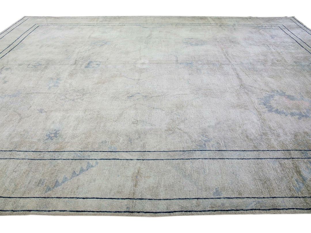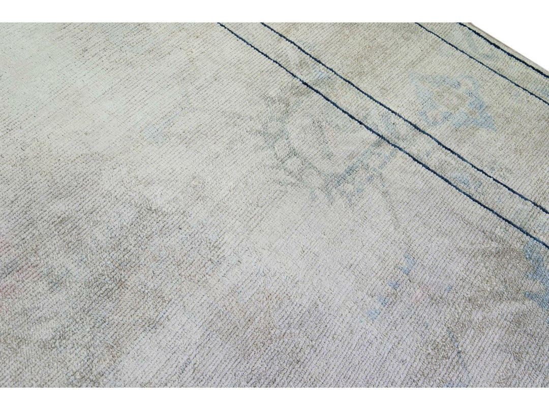 Gray Modern Turkish Oushak Handmade Floral Designed Oversize Wool Rug