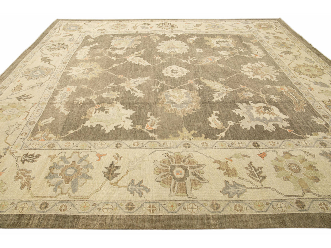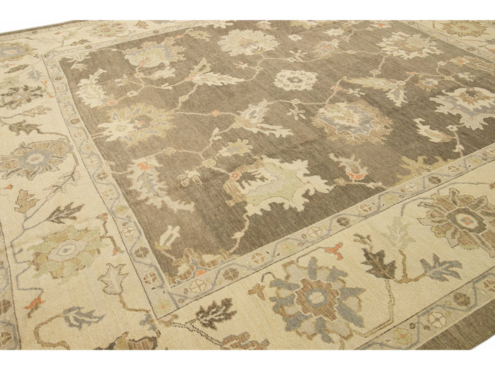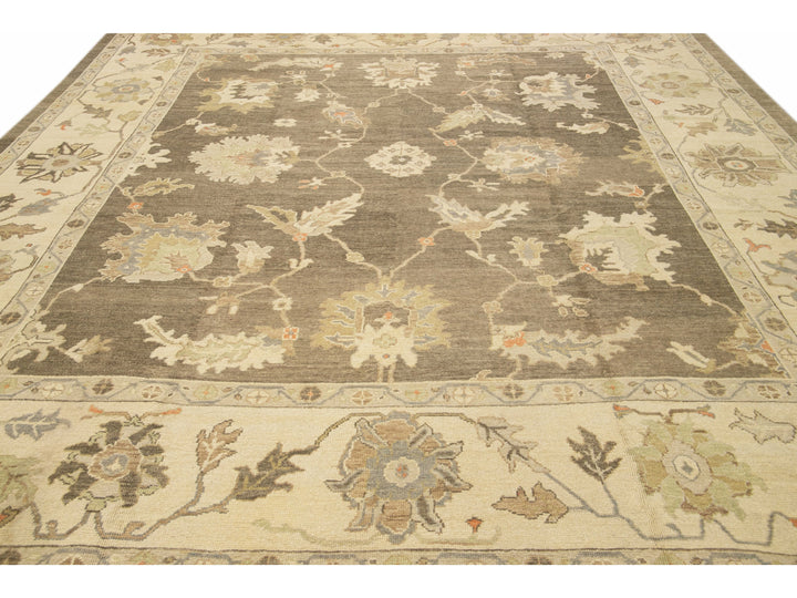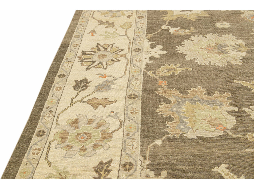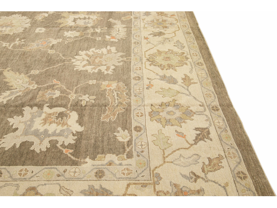 Modern Turkish Oushak Handmade Floral Brown Wool Rug