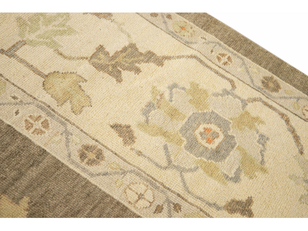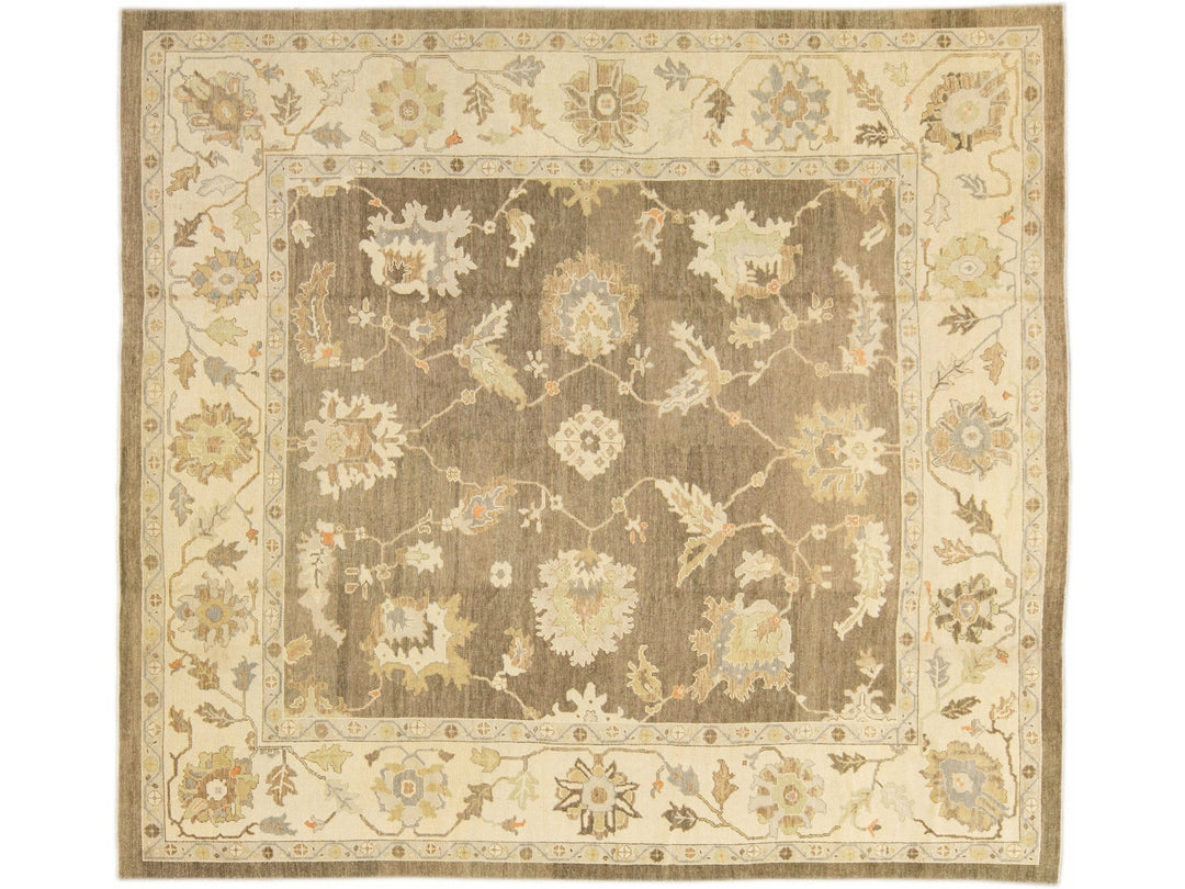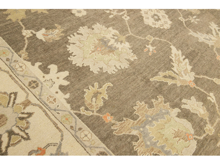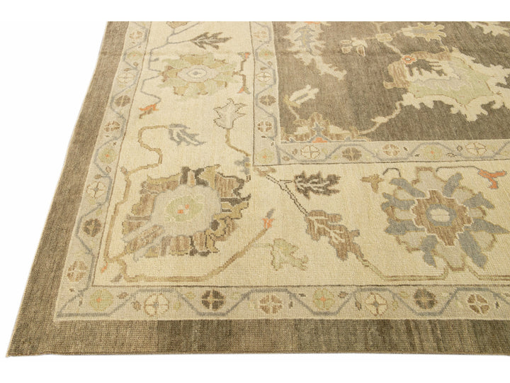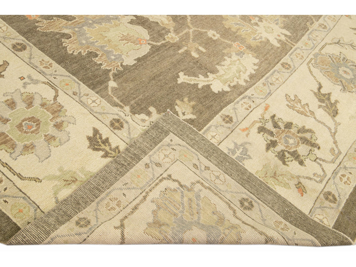 Modern Turkish Oushak Handmade Floral Brown Wool Rug
