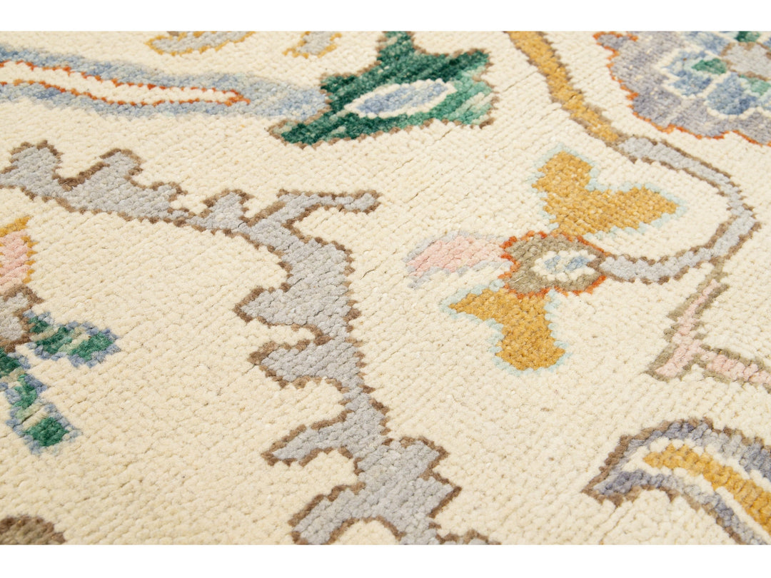Beige Modern Oushak Handmade Floral Pattern Wool Rug