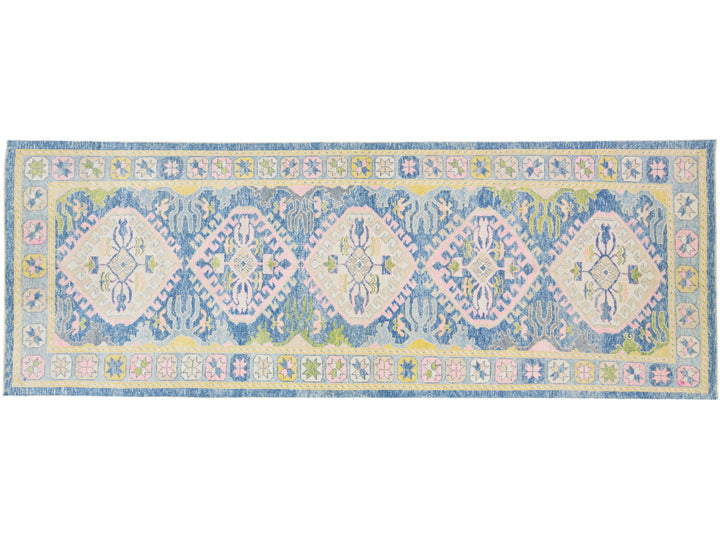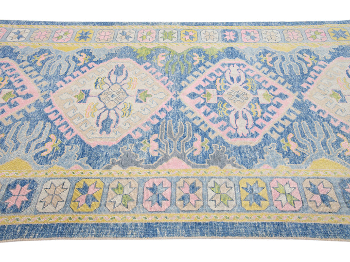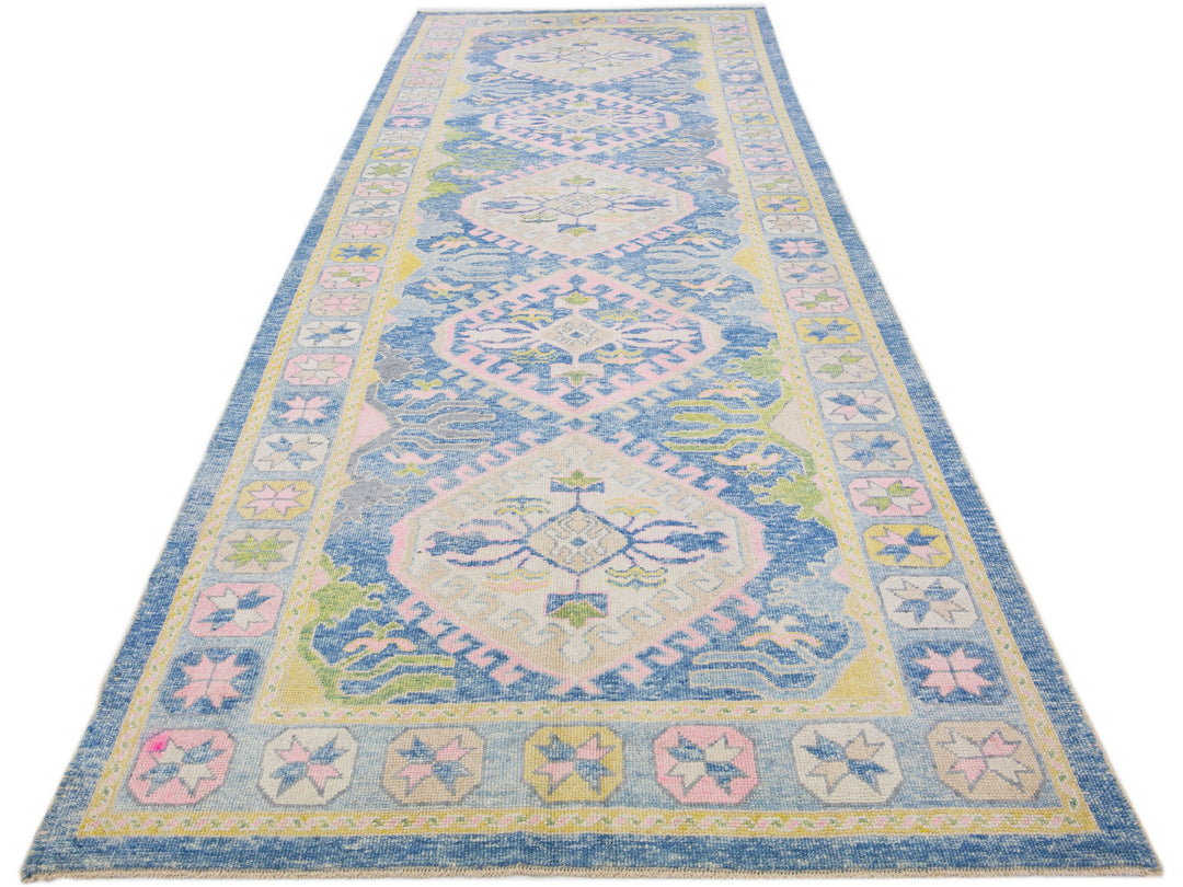 Modern Turkish Oushak Multicolor Handmade Wool Runner with Tribal Design