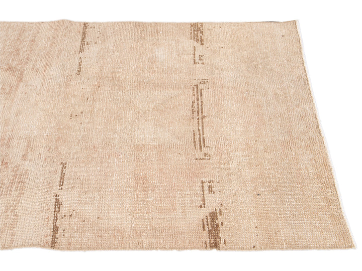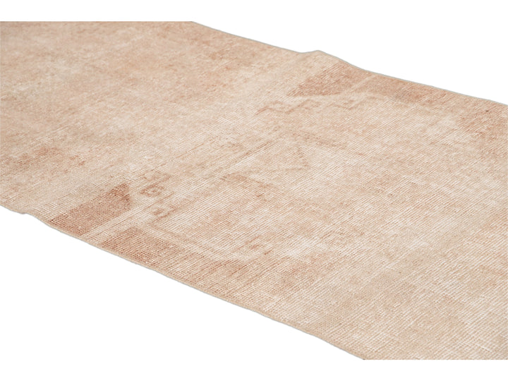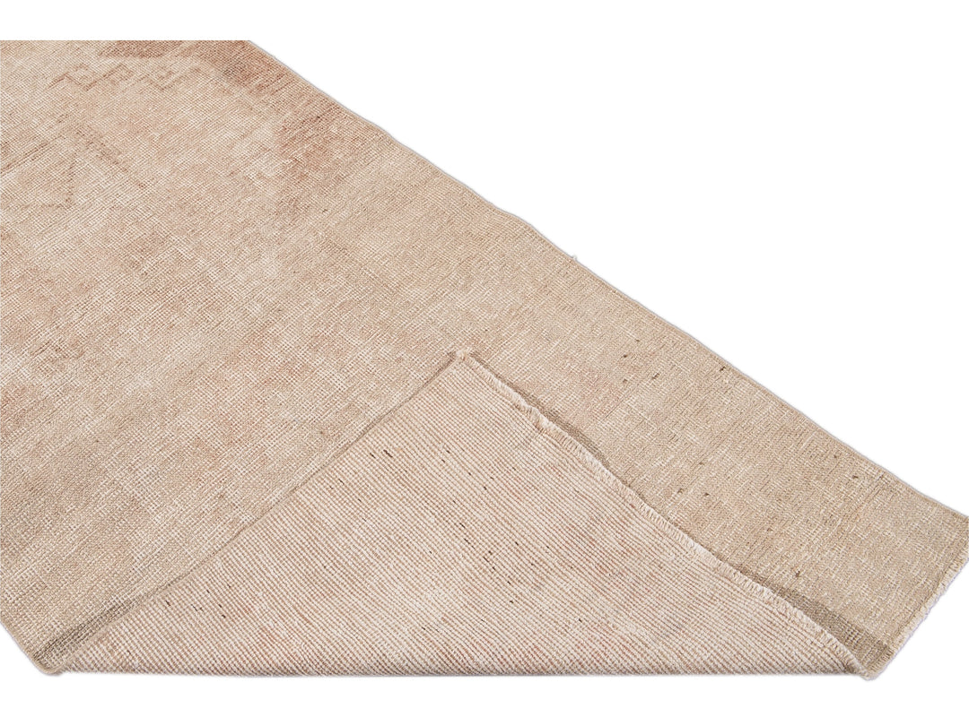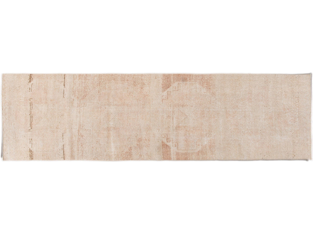Vintage Beige Turkish Handmade Tribal Wool Runner