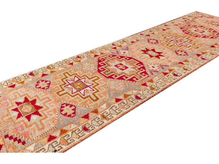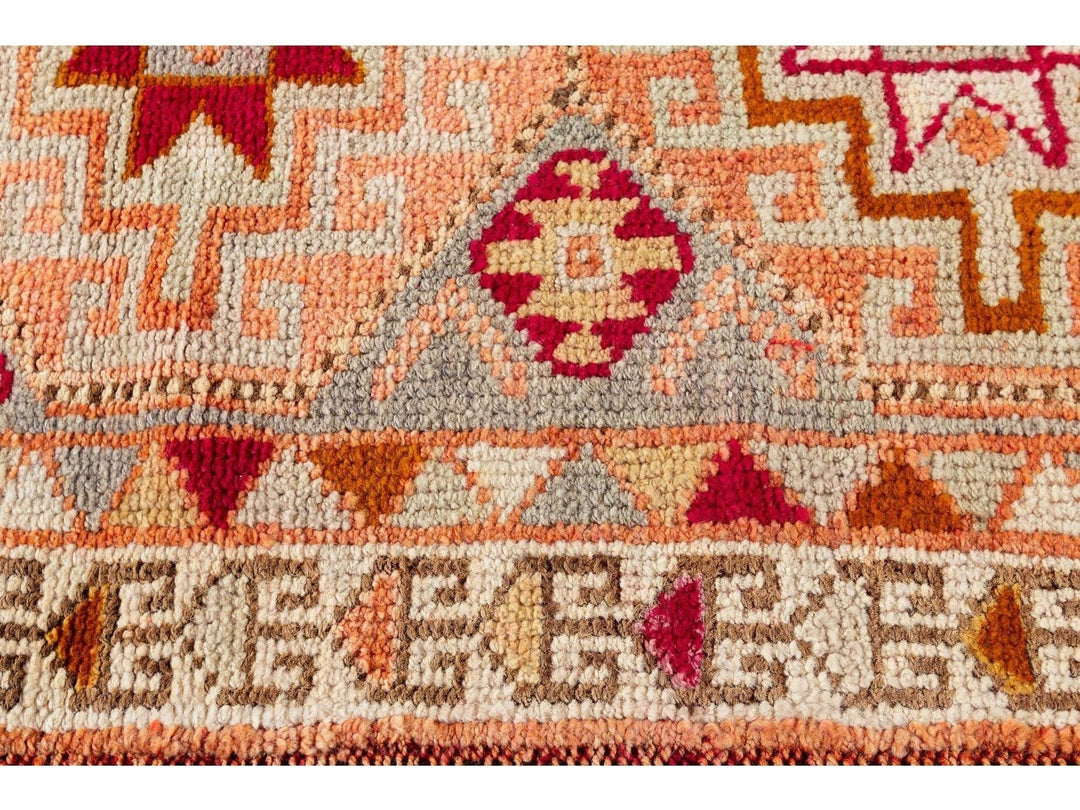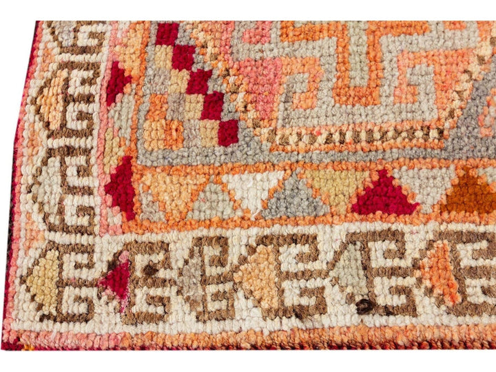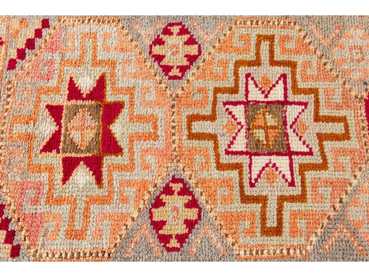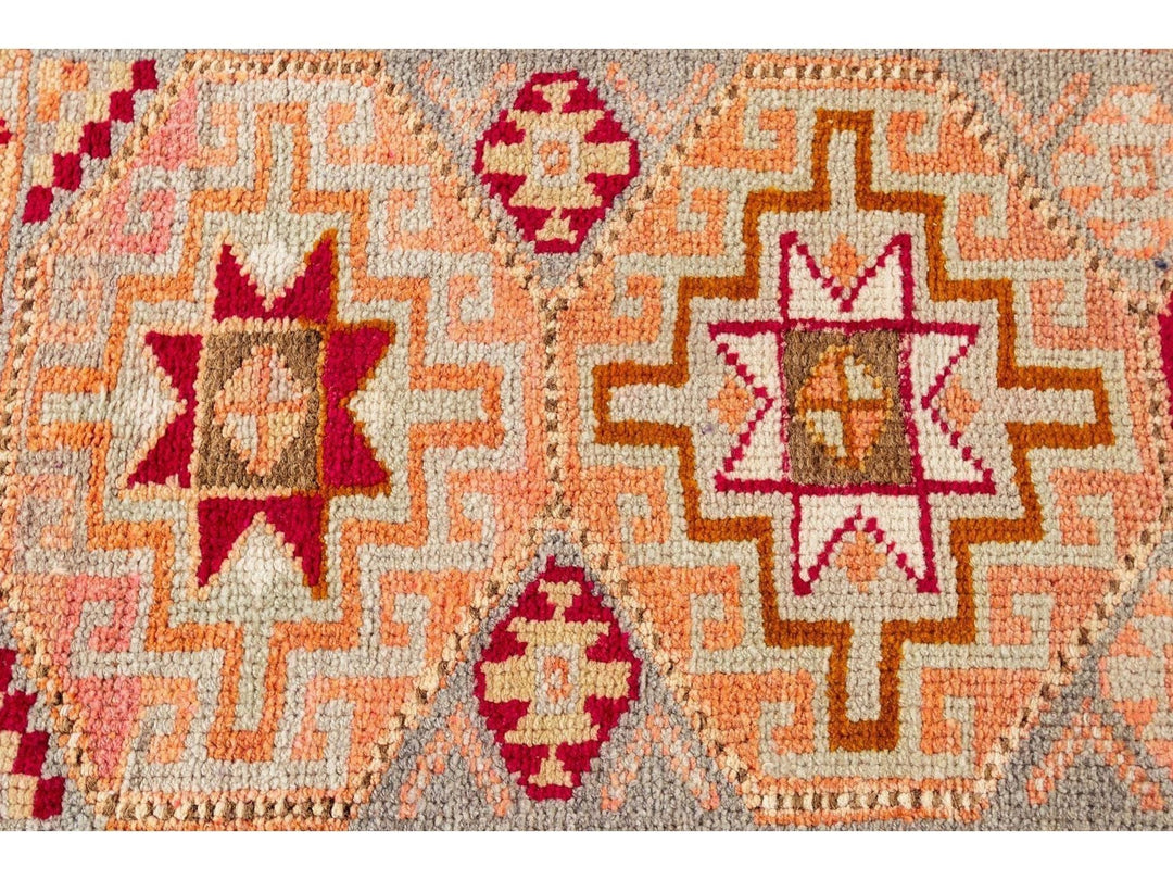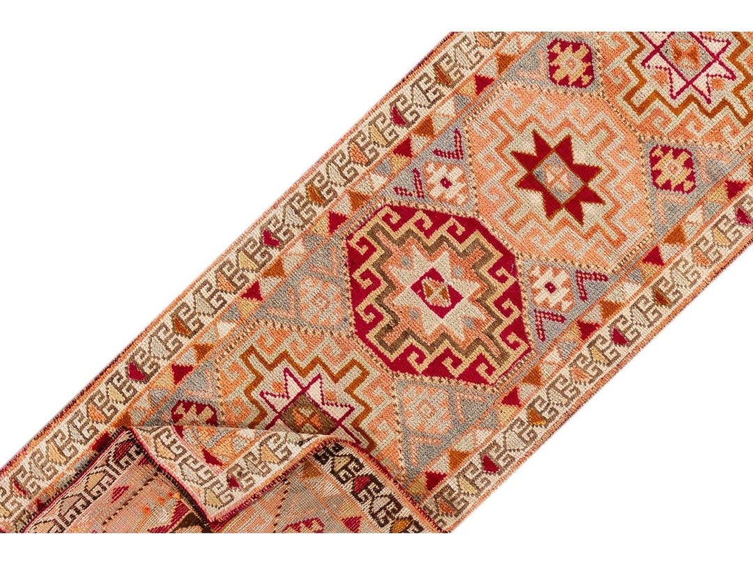 A 20th-century vintage Turkish Anatolian runner rug with an all-over geometric orange motif. This rug measures at 3'1" x 10'11".