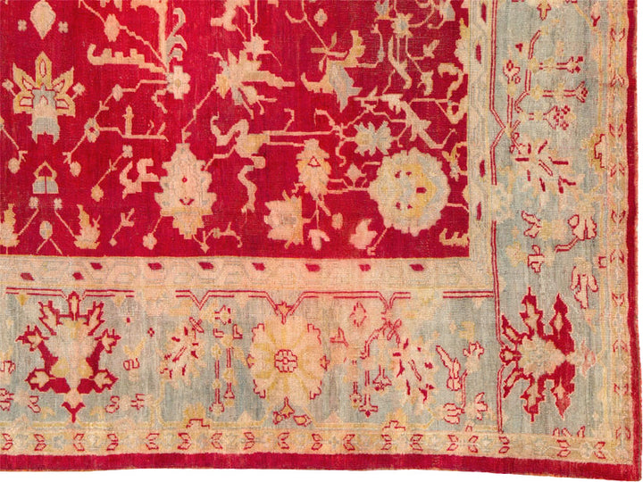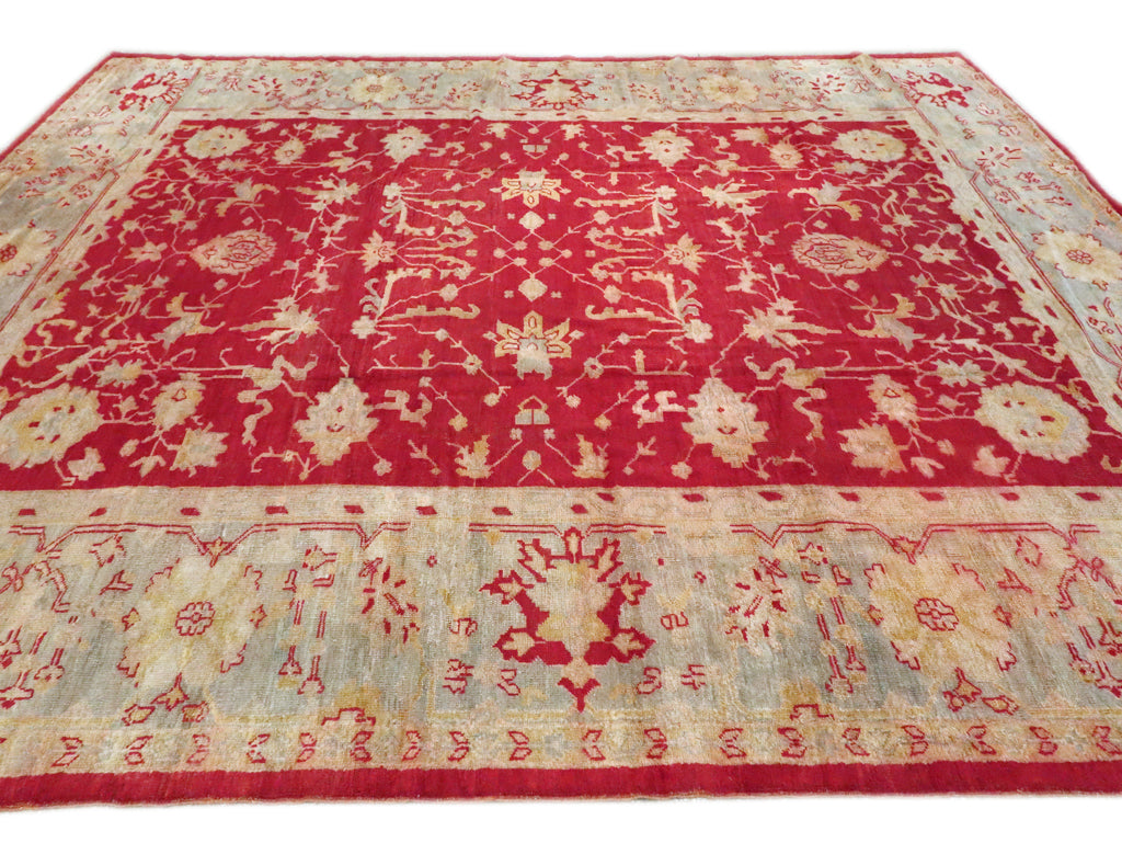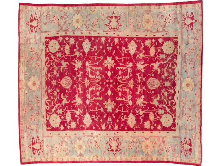 Indulge in the sheer opulence of this exquisite Antique Oushak Wool Rug, measuring a grand 10' 2'' x 11' 11''.