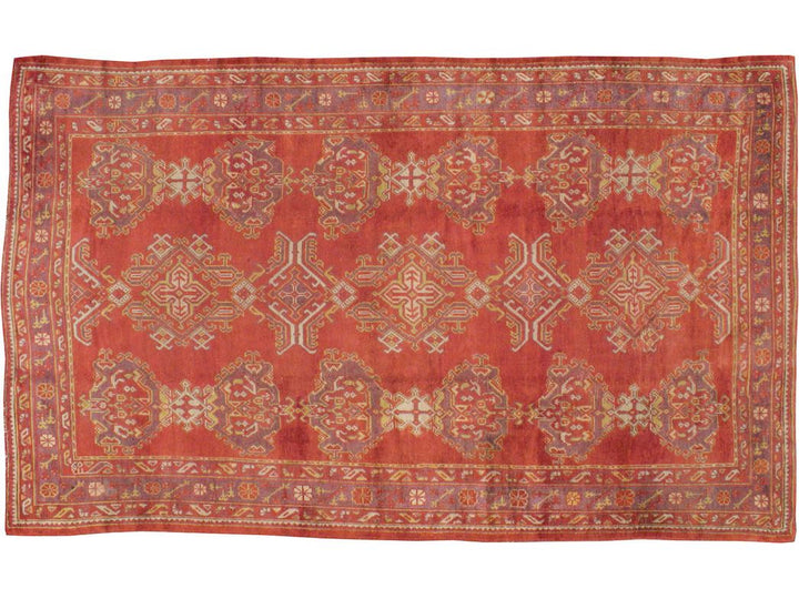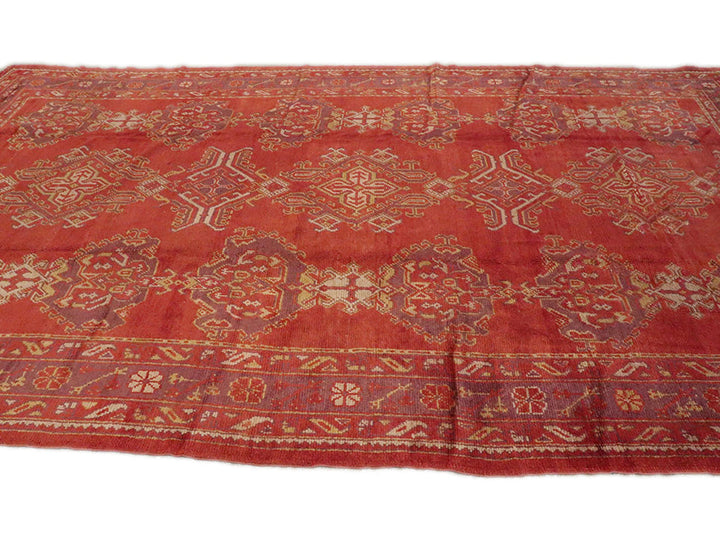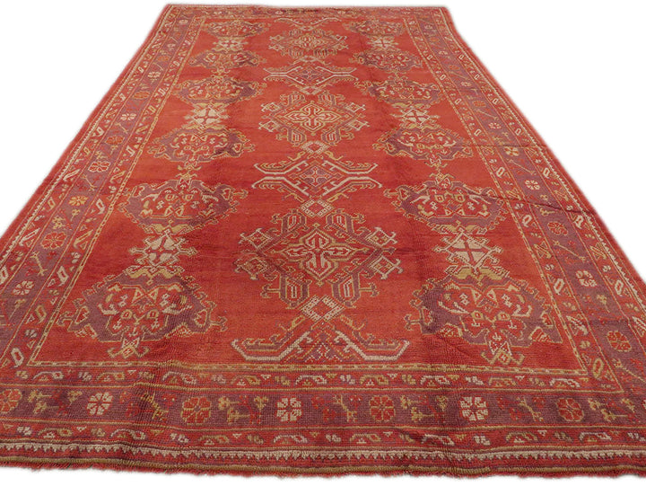 Experience the grandeur of this 8' 1'' x 13' 2'' Antique Oushak Wool Rug, a masterpiece of luxurious craftsmanship.