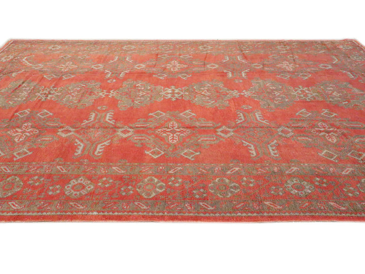 Indulge in the timeless luxury of this handcrafted Antique Oushak Wool Rug, sized at 8'6'' x 14'2''.
