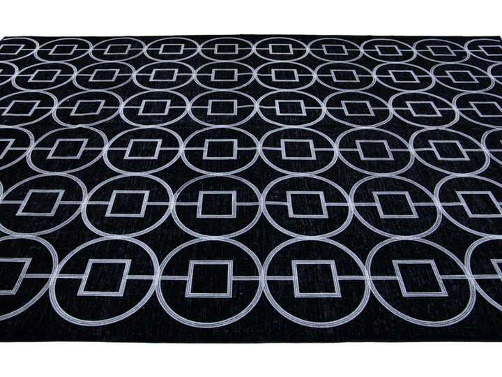 Modern Turkish Handmade Geometric Pattern Black Wool Rug