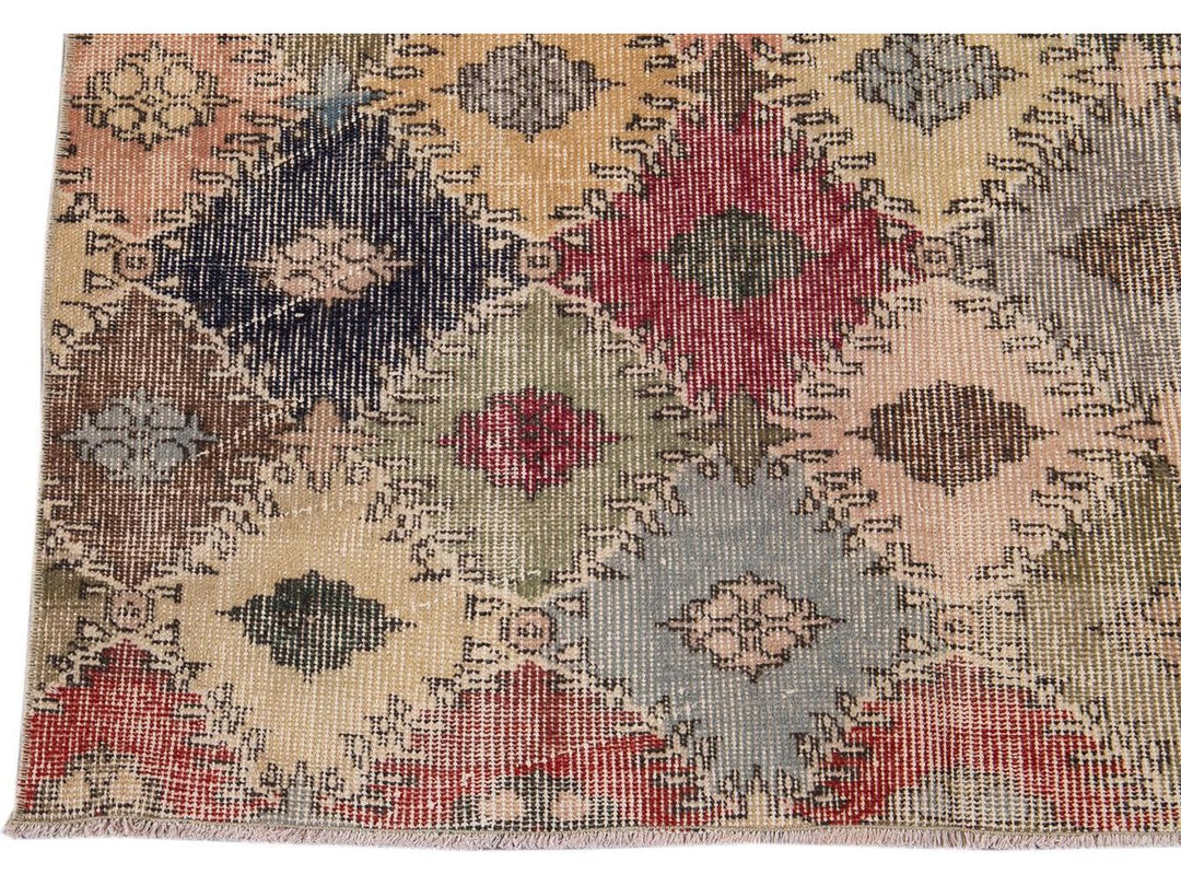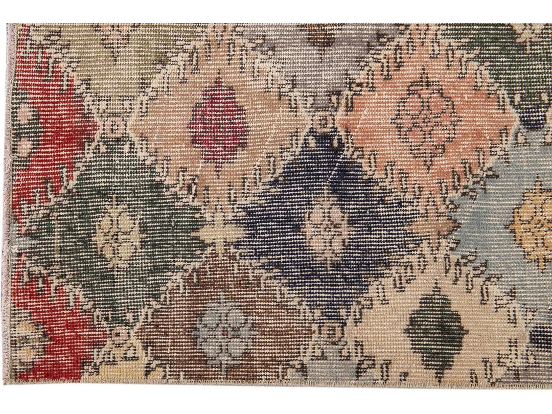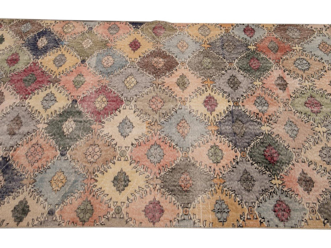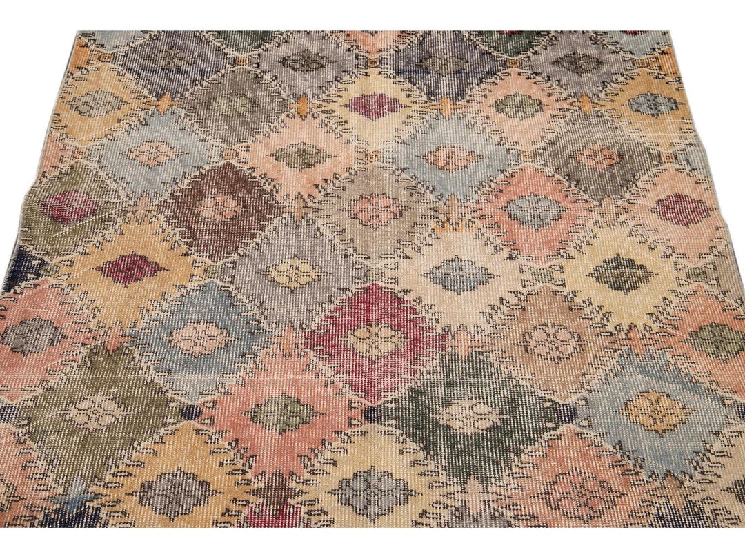 Beautiful Vintage Turkish rug, hand-knotted wool with a multi-color field in a gorgeous all-over geometric tribal design.