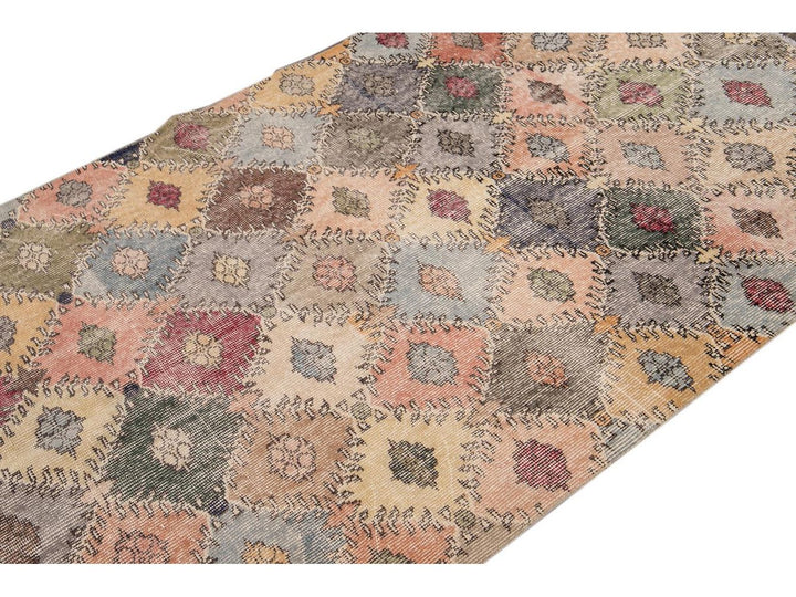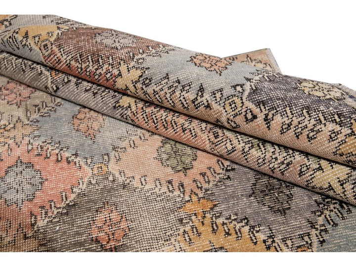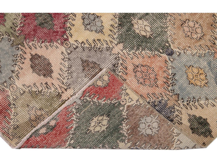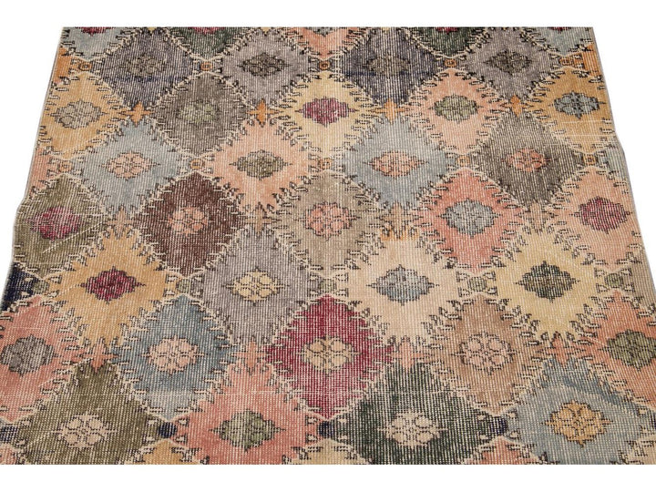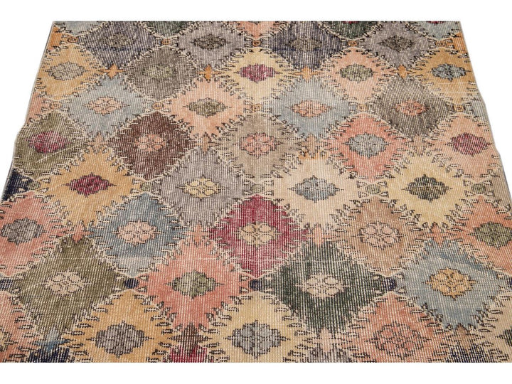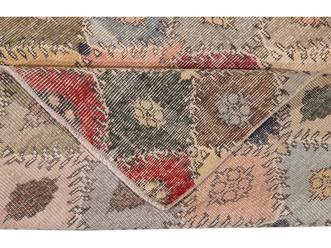 Beautiful Vintage Turkish rug, hand-knotted wool with a multi-color field in a gorgeous all-over geometric tribal design.