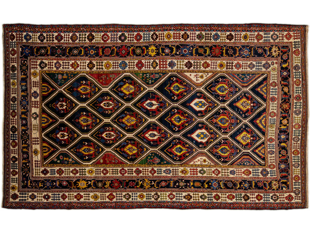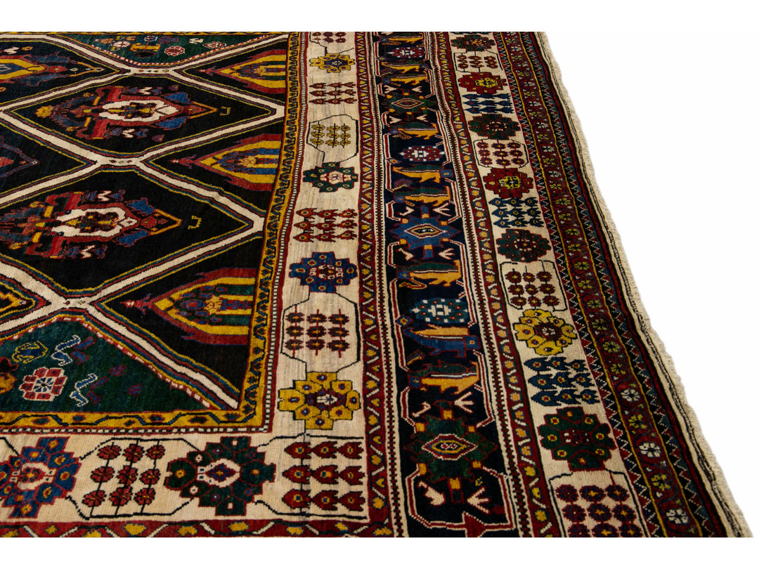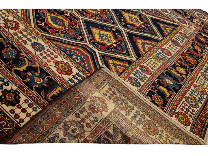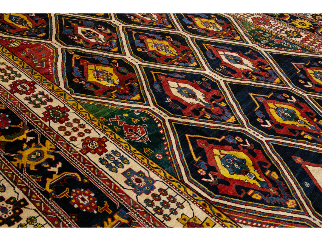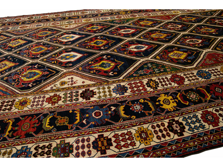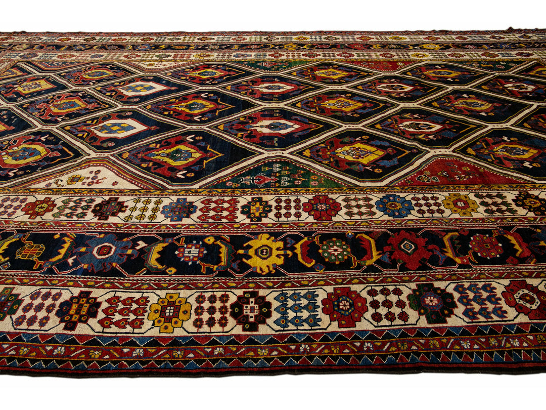 Antique Persian Bakhtiari Handmade Allover Designed Multicolor Oversize Wool Rug
