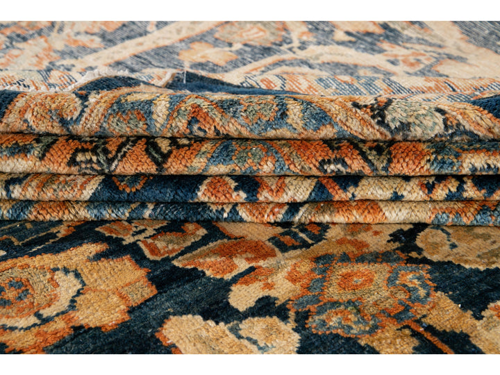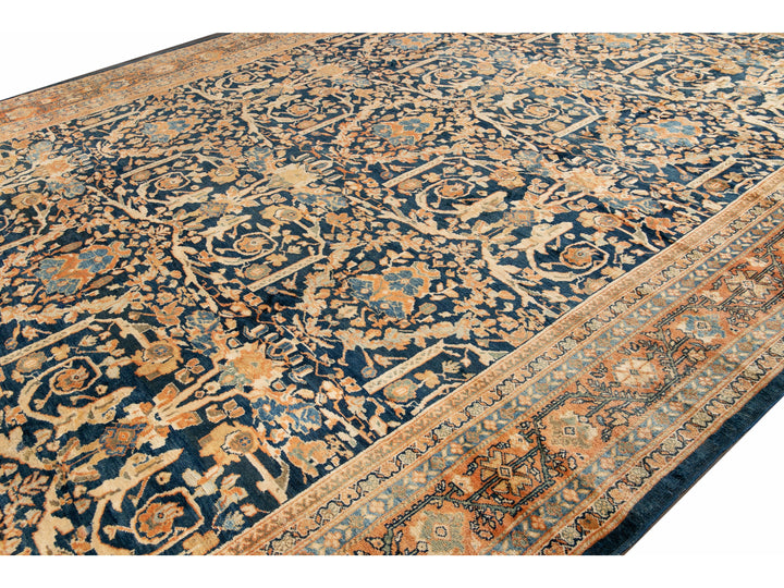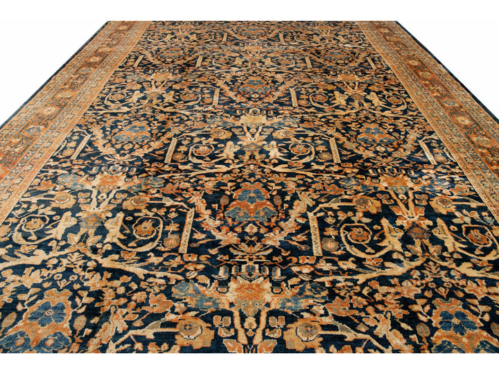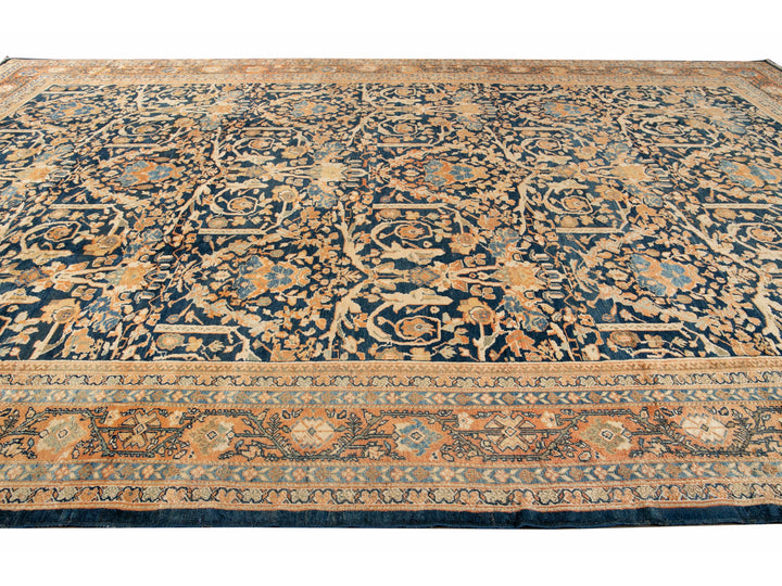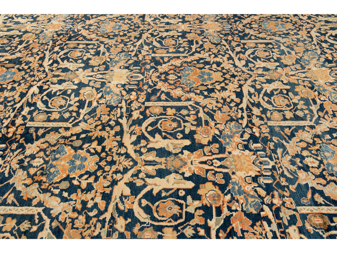 Oversize Antique Persian Mahal Blue Handmade Allover Floral Wool Rug