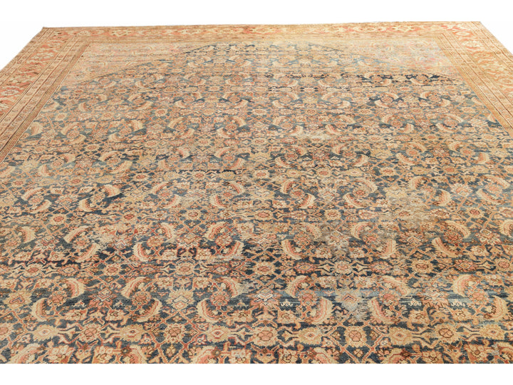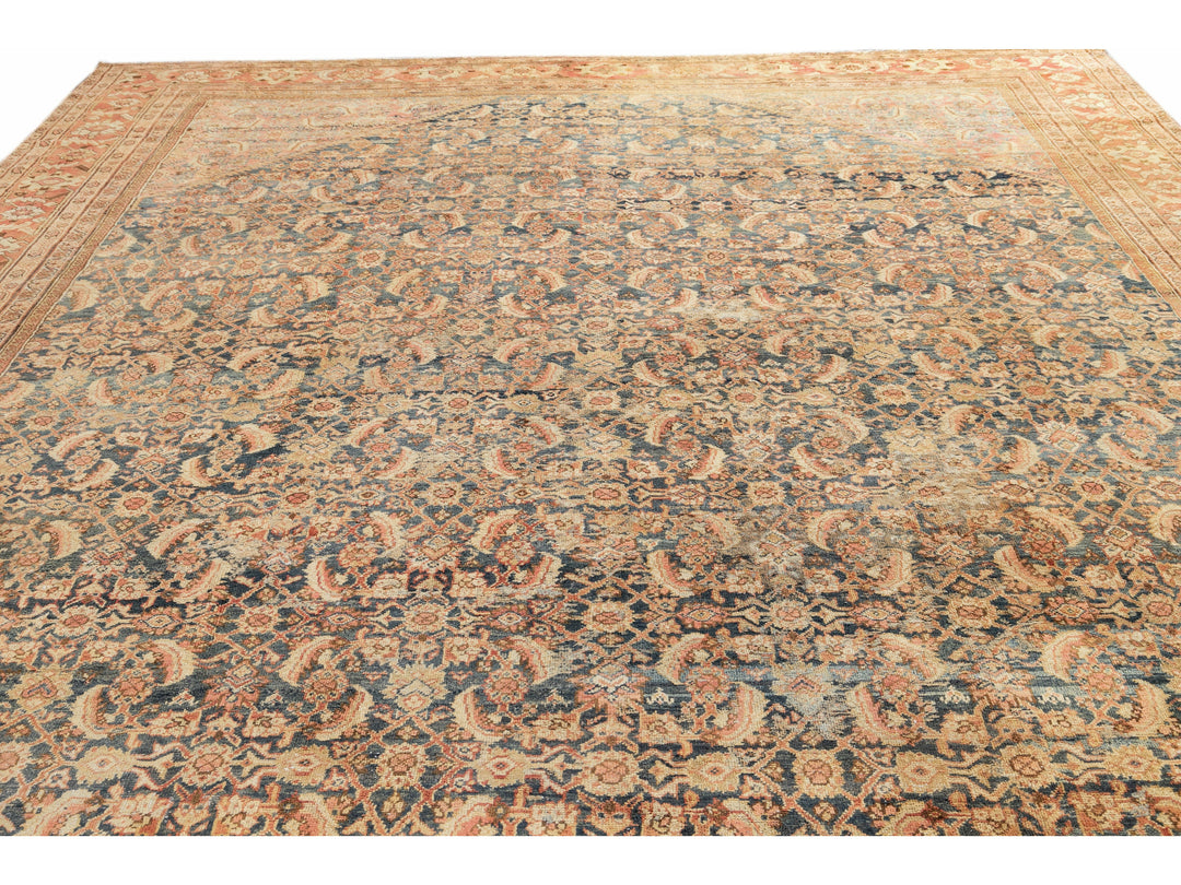 Antique Mahal Handmade Allover Motif Blue Oversize Wool Rug
