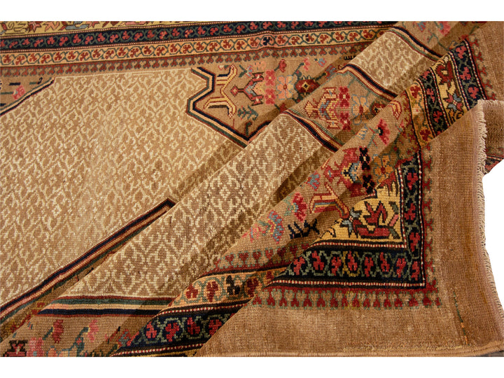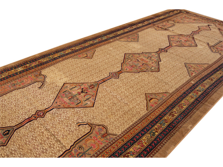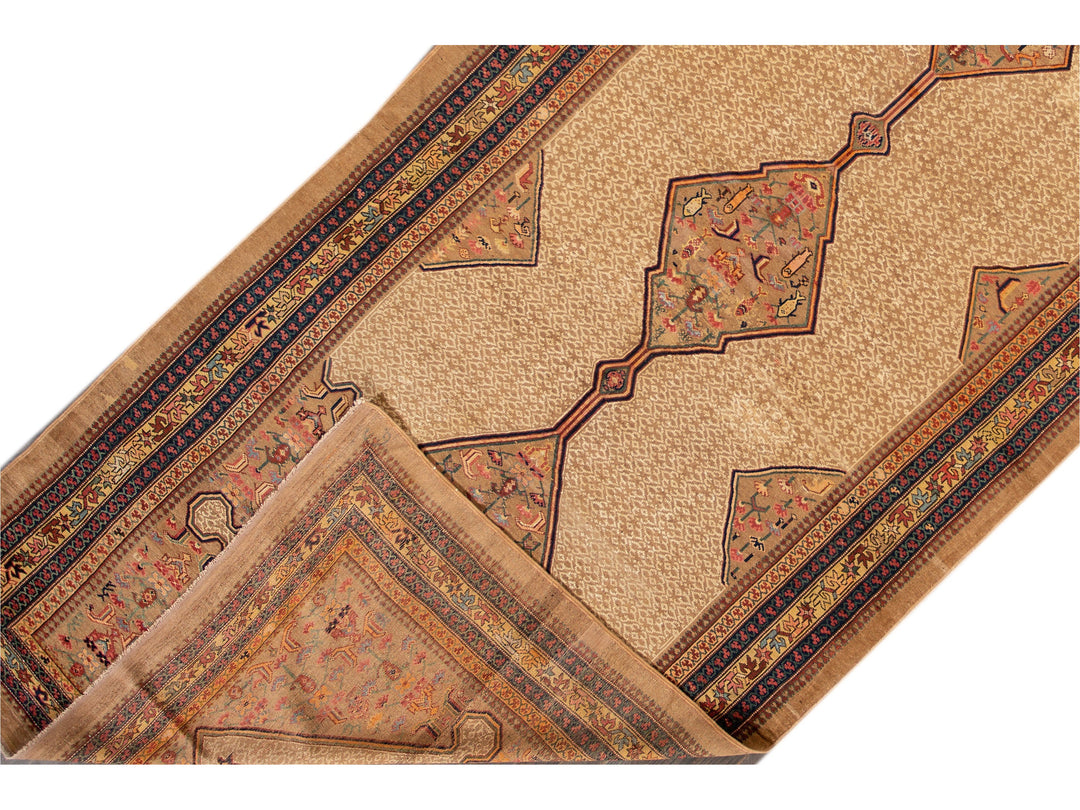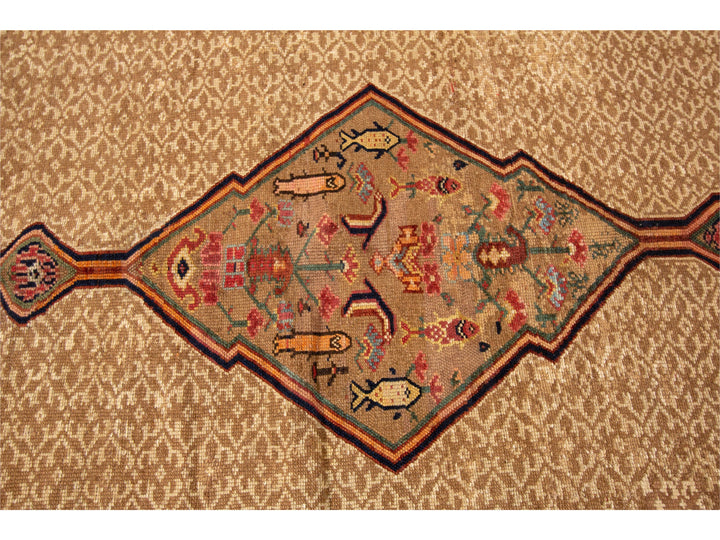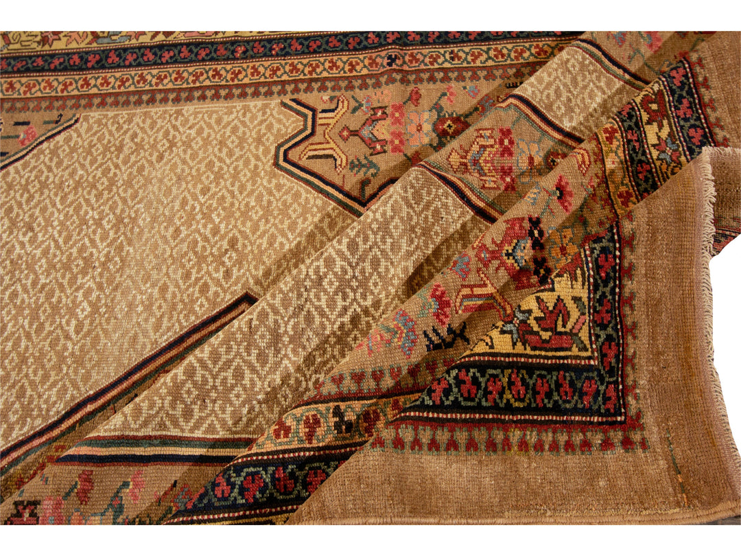 Beautiful Antique Persian Serab Rug, hand-knotted wool with a light brown field, tan and ivory accents in an allover multi medallion design.
