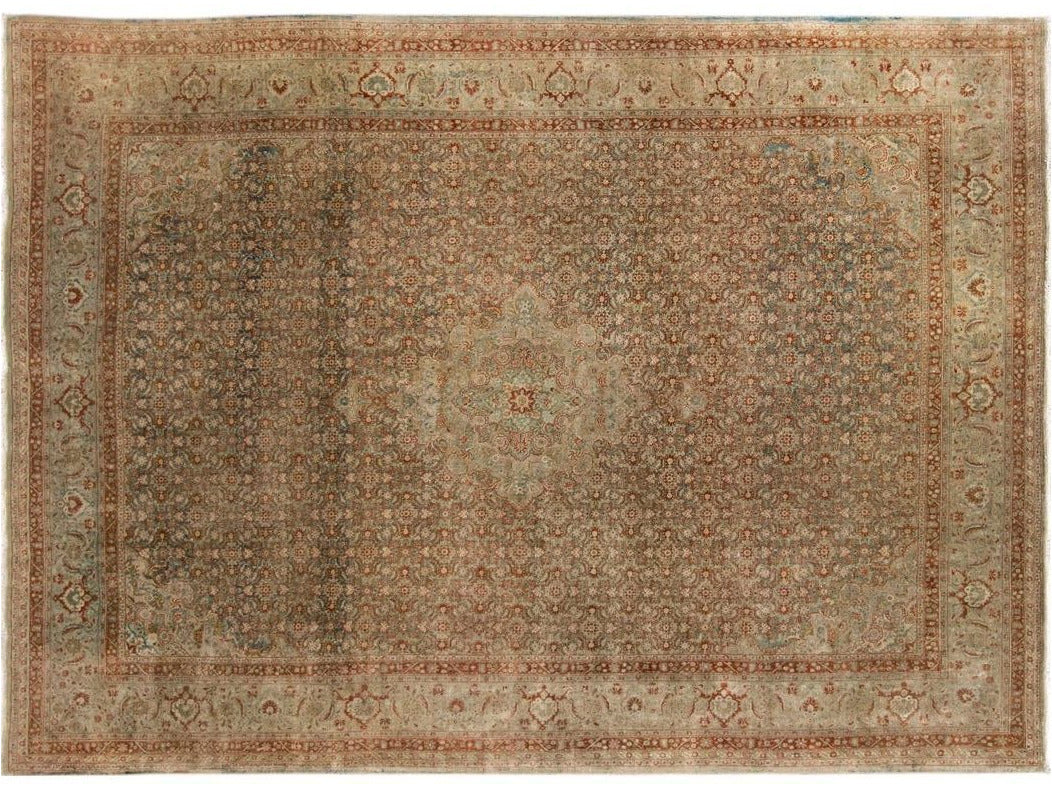 Early 20th Century Green Antique Tabriz Wool Rug 9 X 12