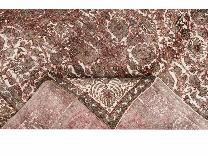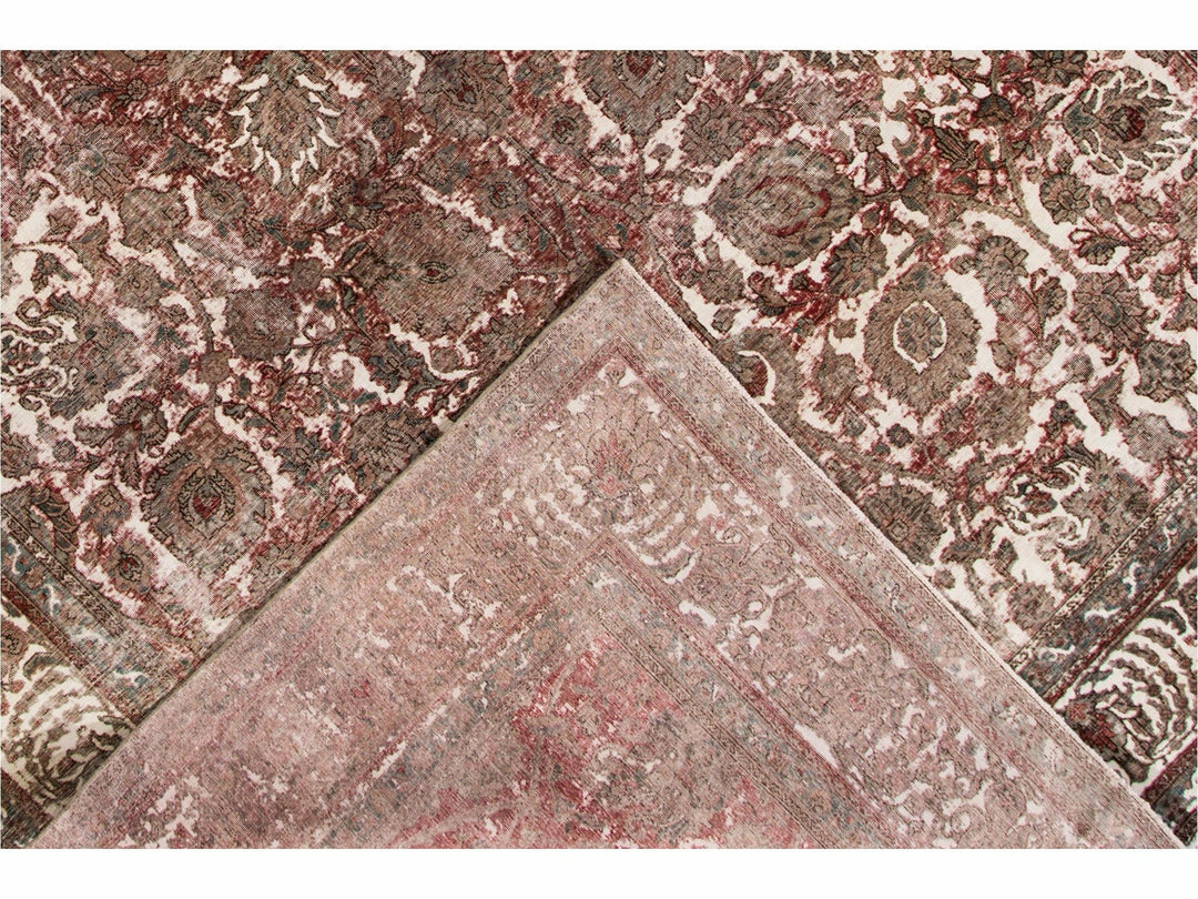 Beautiful hand-knotted antique Persian wool rug. This rug has a brownfield with tan accents of floral designs.