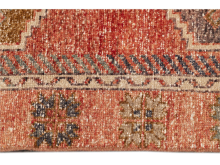 Beautiful Antique Turkish Anatolian Runner Rug, hand-knotted wool with a red field, brown and orange accents in an multi medallion design.