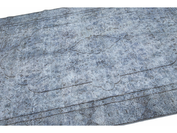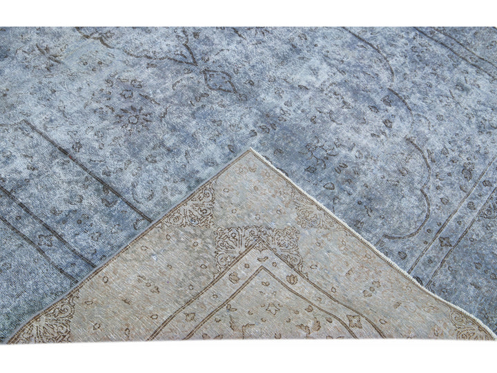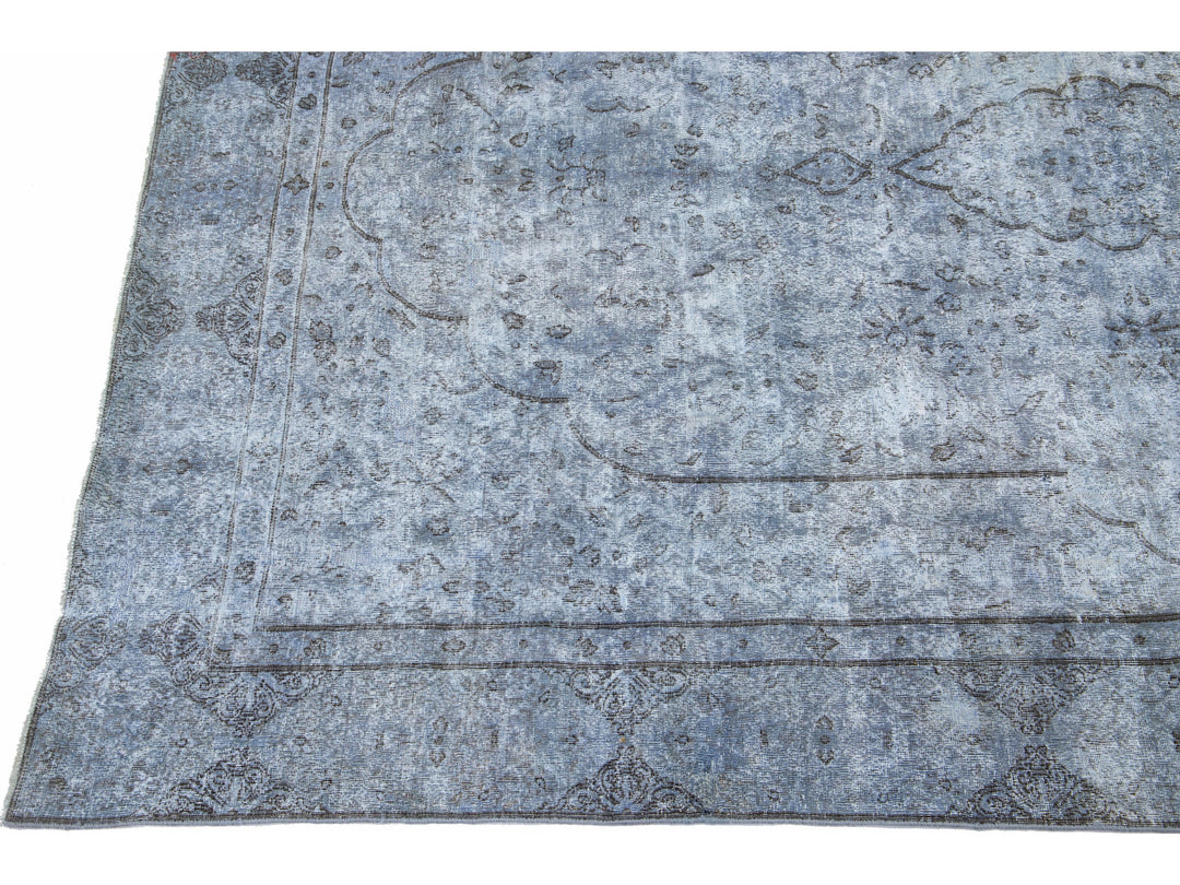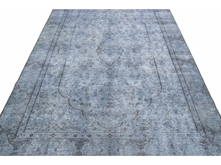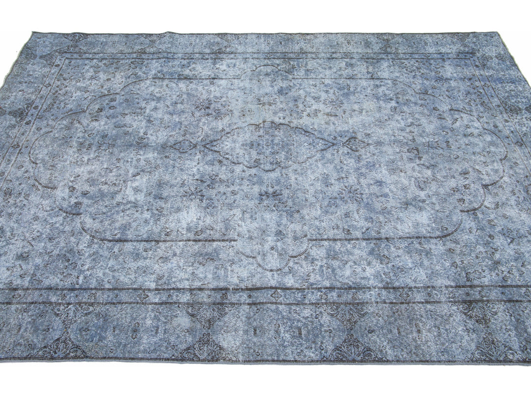 Beautiful Vintage Overdyed hand-knotted wool rug with a blue field. This Persian rug has gray accents in an all-over medallion design.
