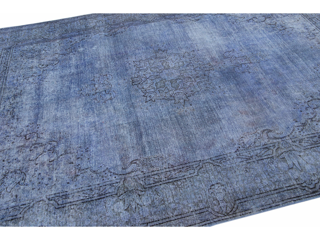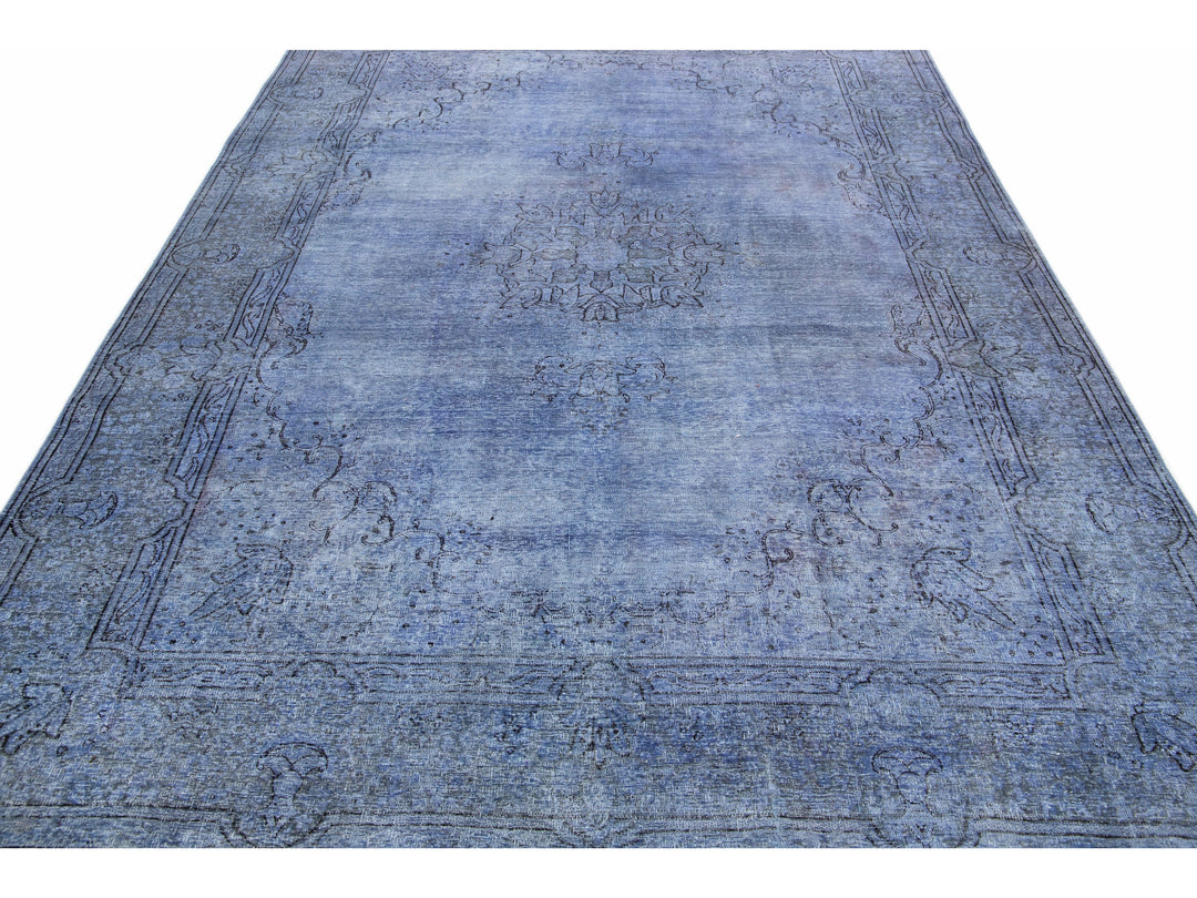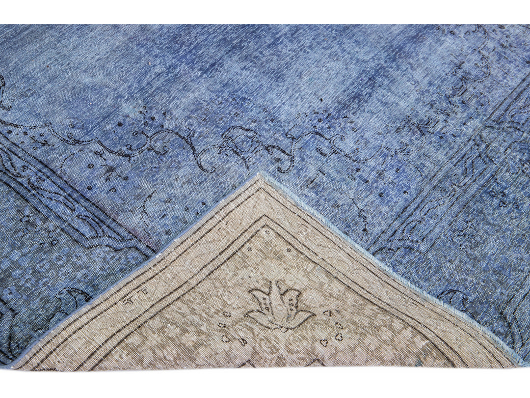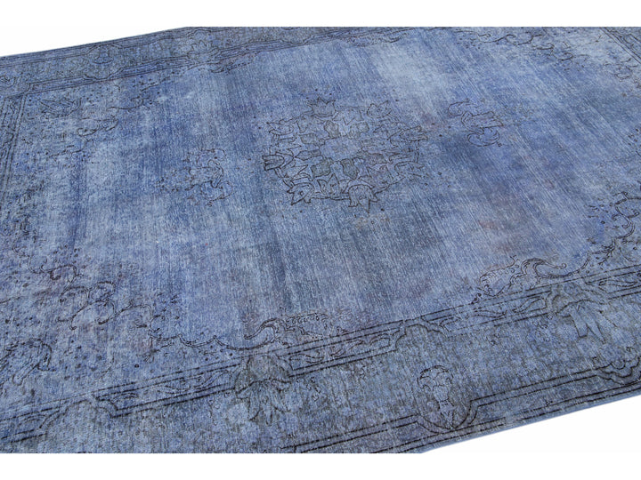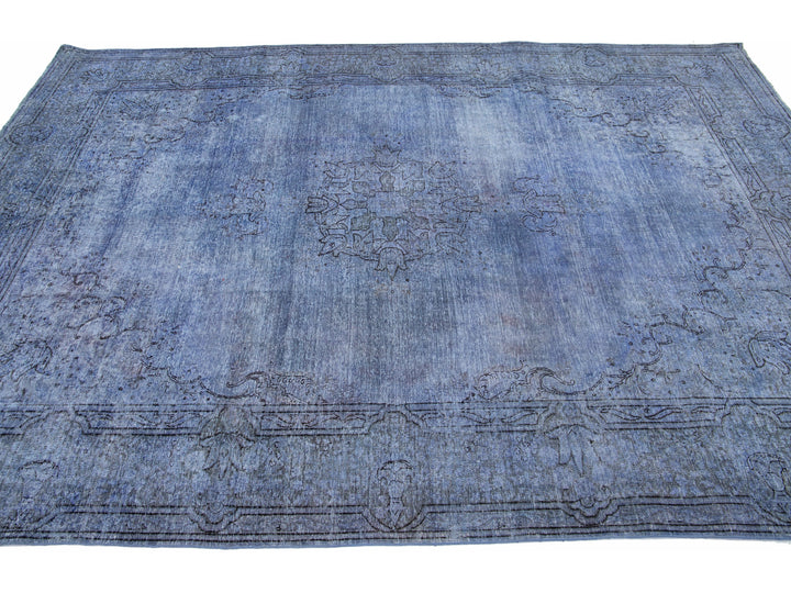 Beautiful Vintage Overdyed hand-knotted wool rug with a blue field. This Persian rug has gray and black accents in an all-over medallion design.