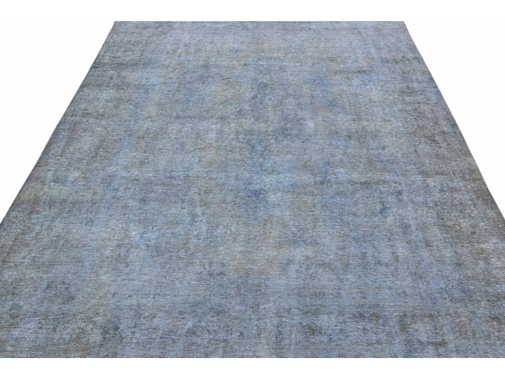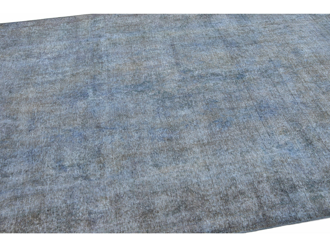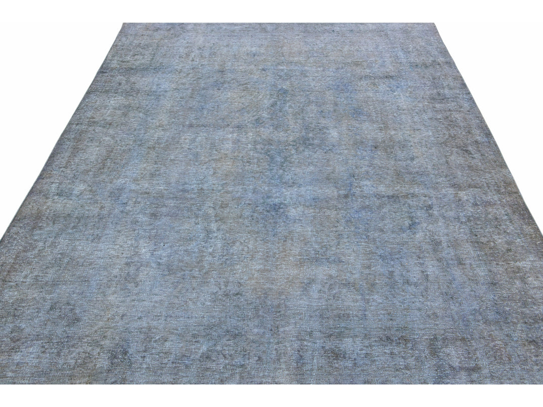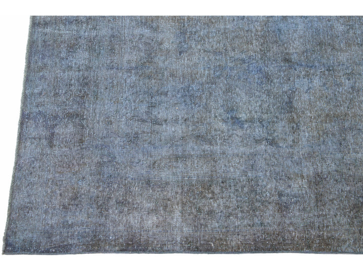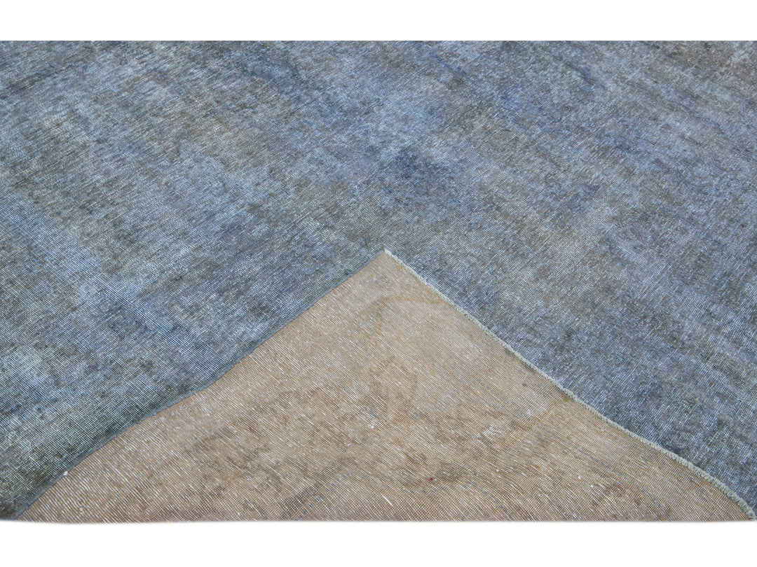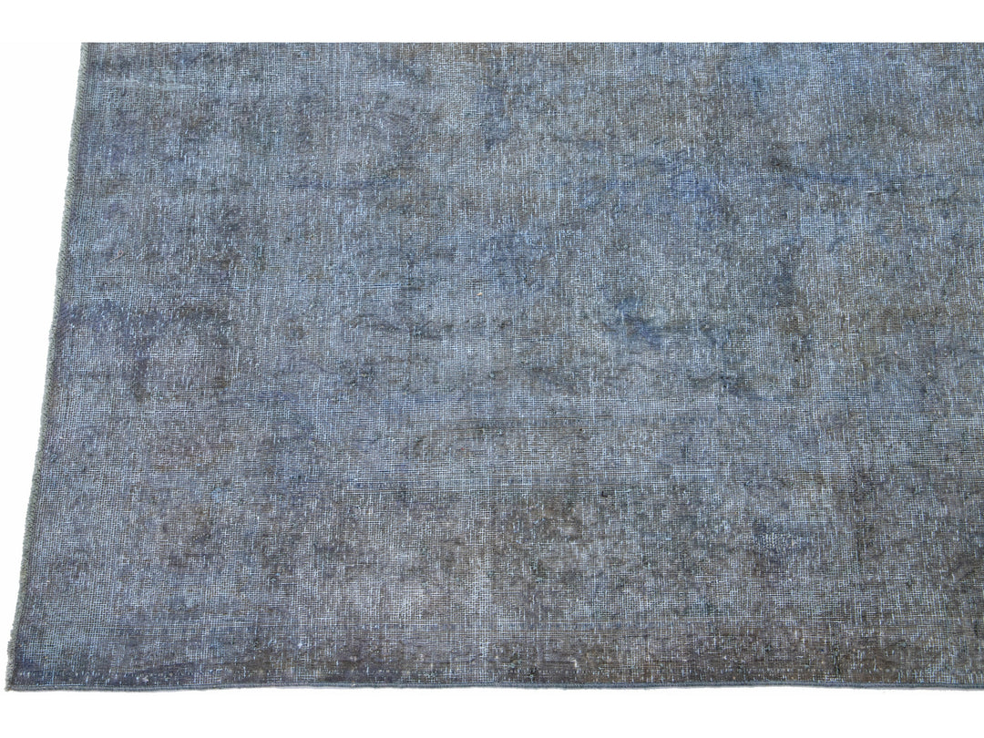 Beautiful Vintage Overdyed hand-knotted wool rug with a blue field. This Persian rug has gray accents in an all-over medallion design.