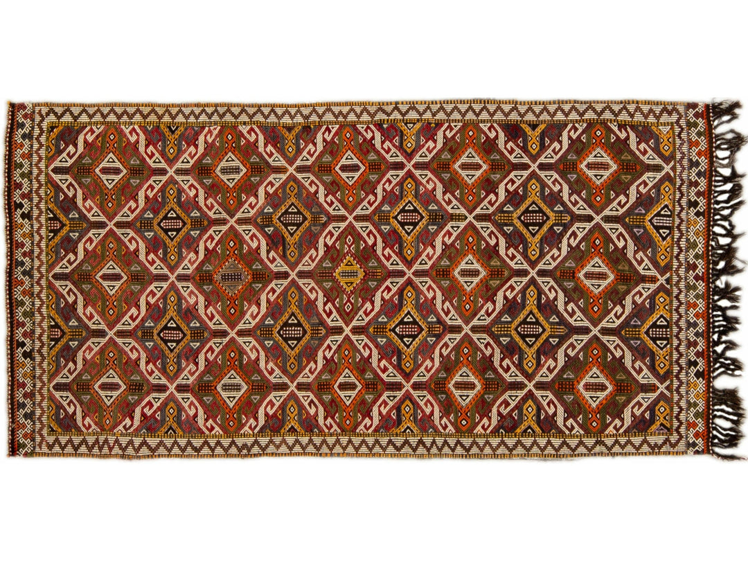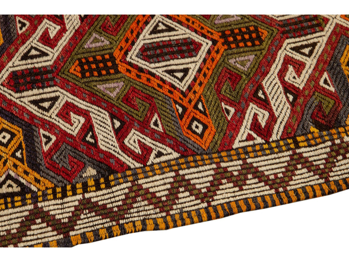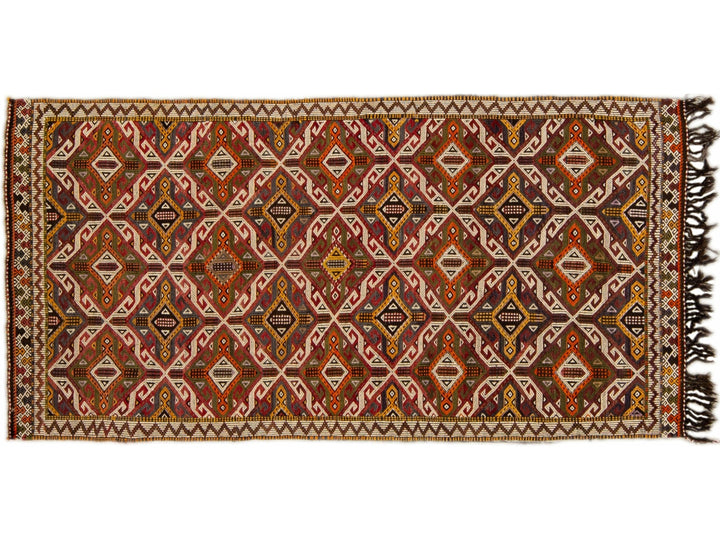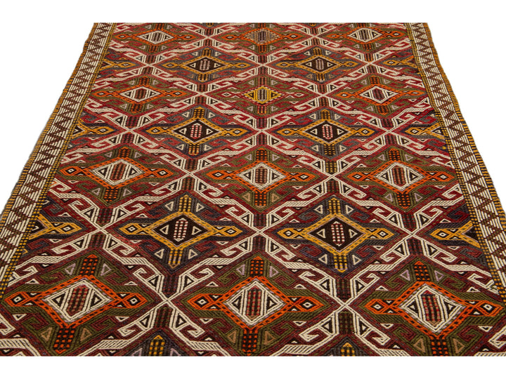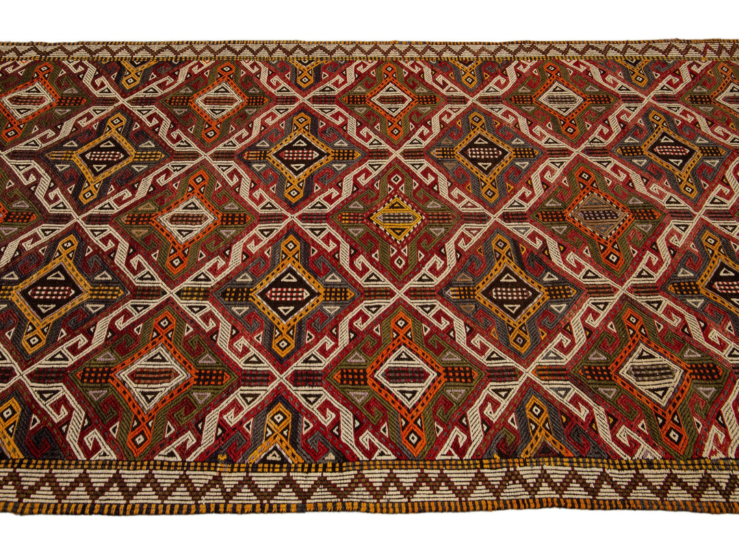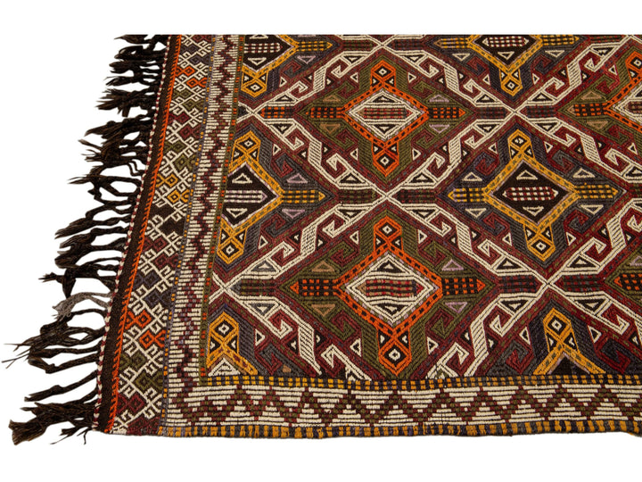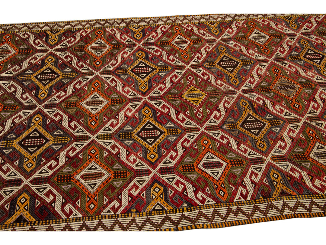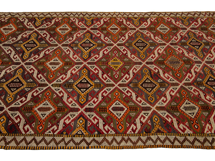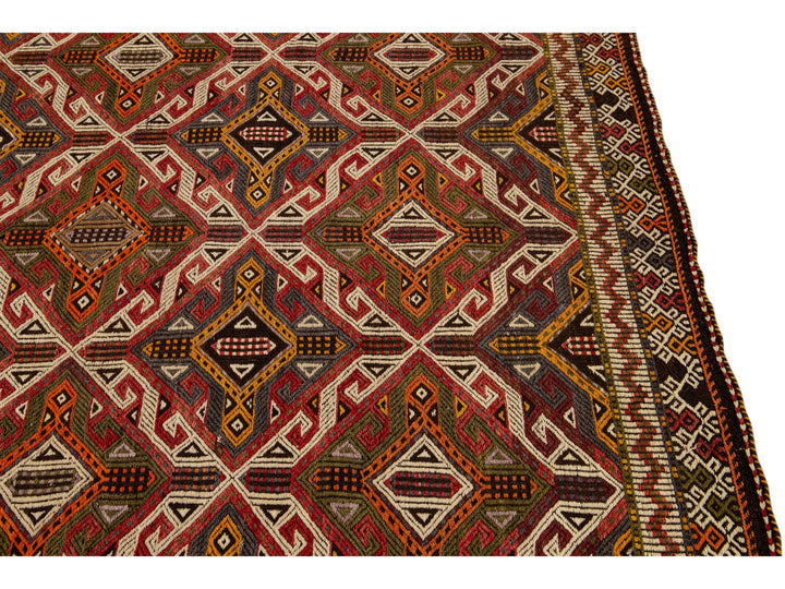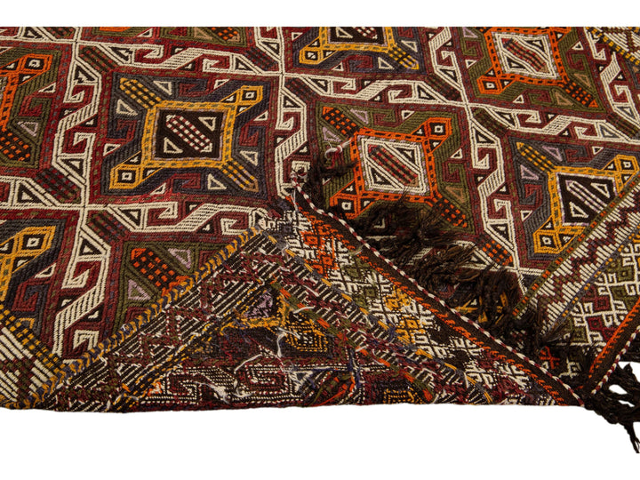Vintage Sumack Handmade Geometric Designed Multicolor Wool Rug