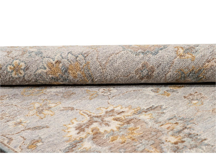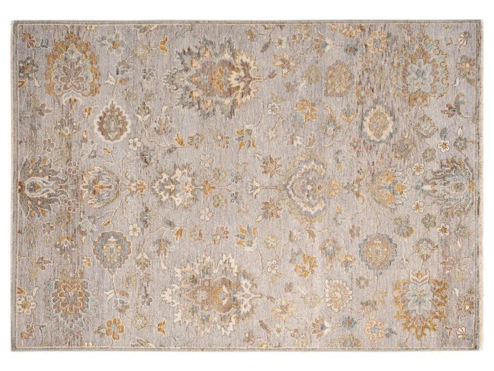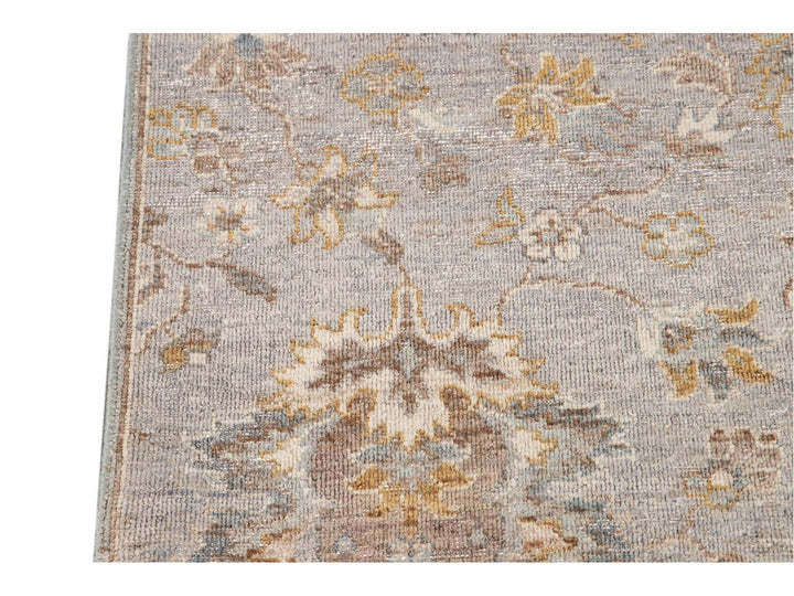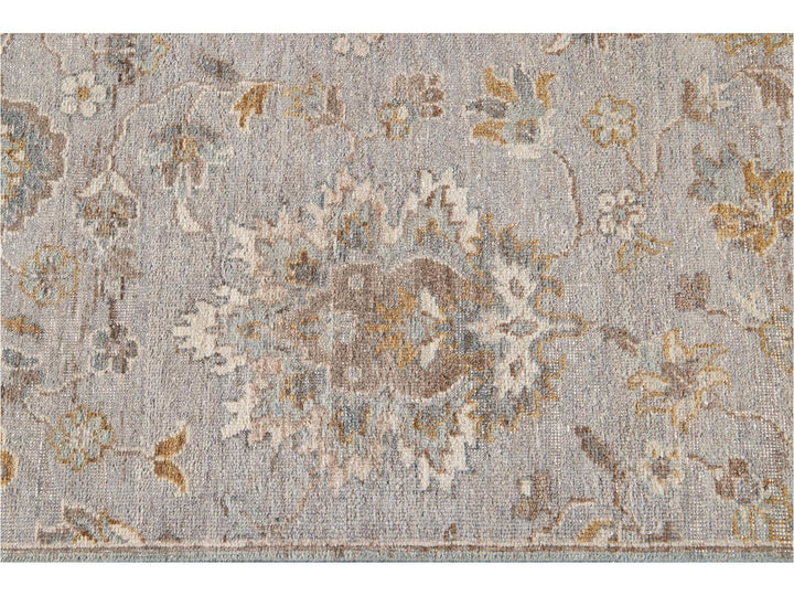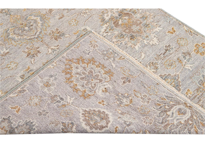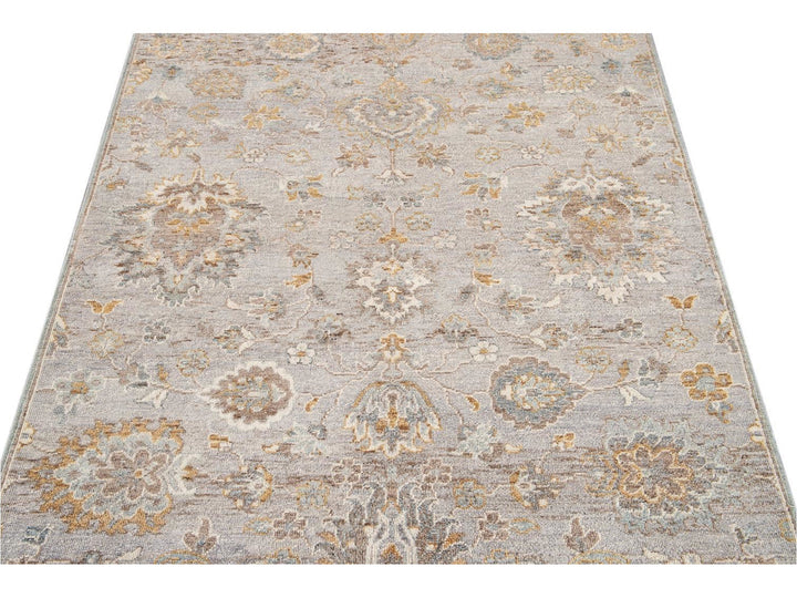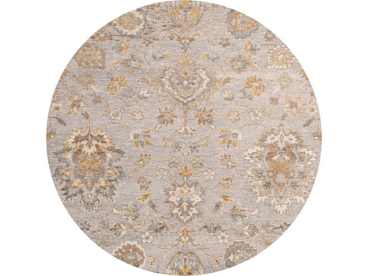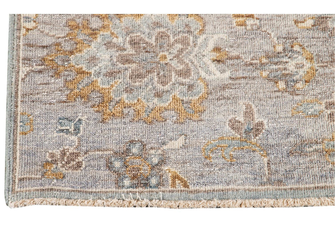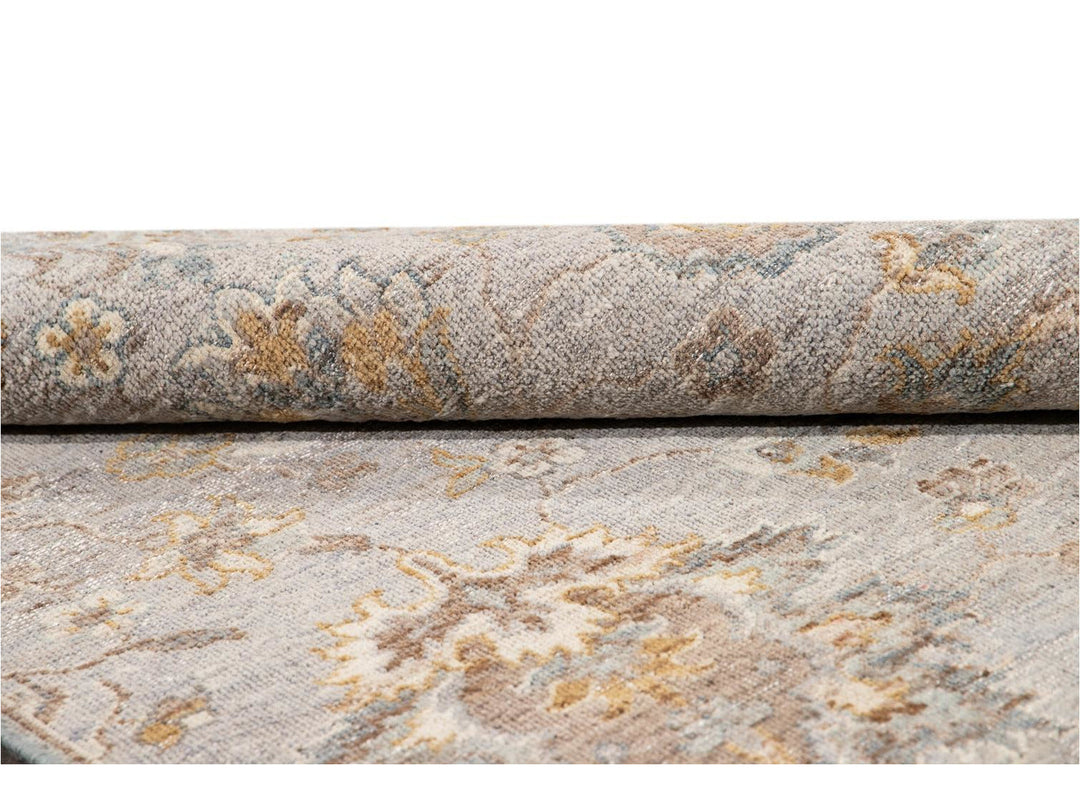 Beautiful contemporary Indian rug, hand knotted wool, with a light gray field, tan and ivory accents in an all-over Classic motif.