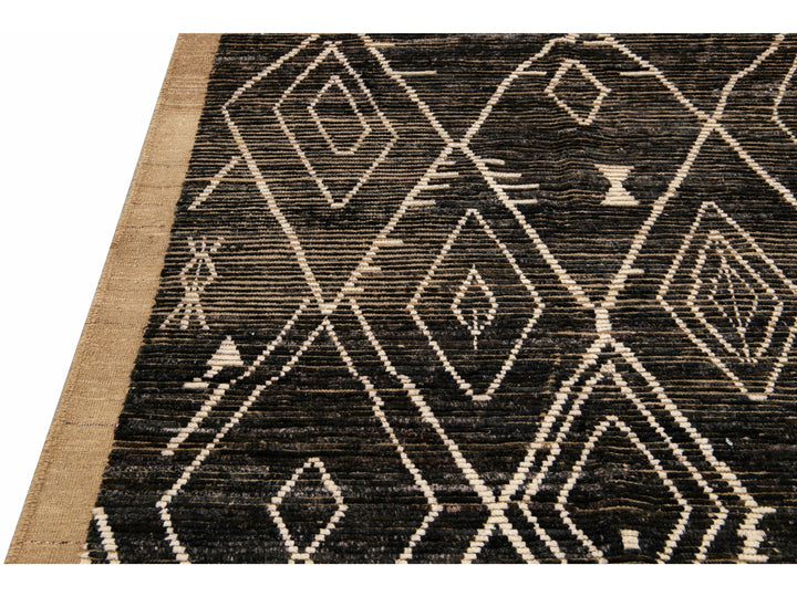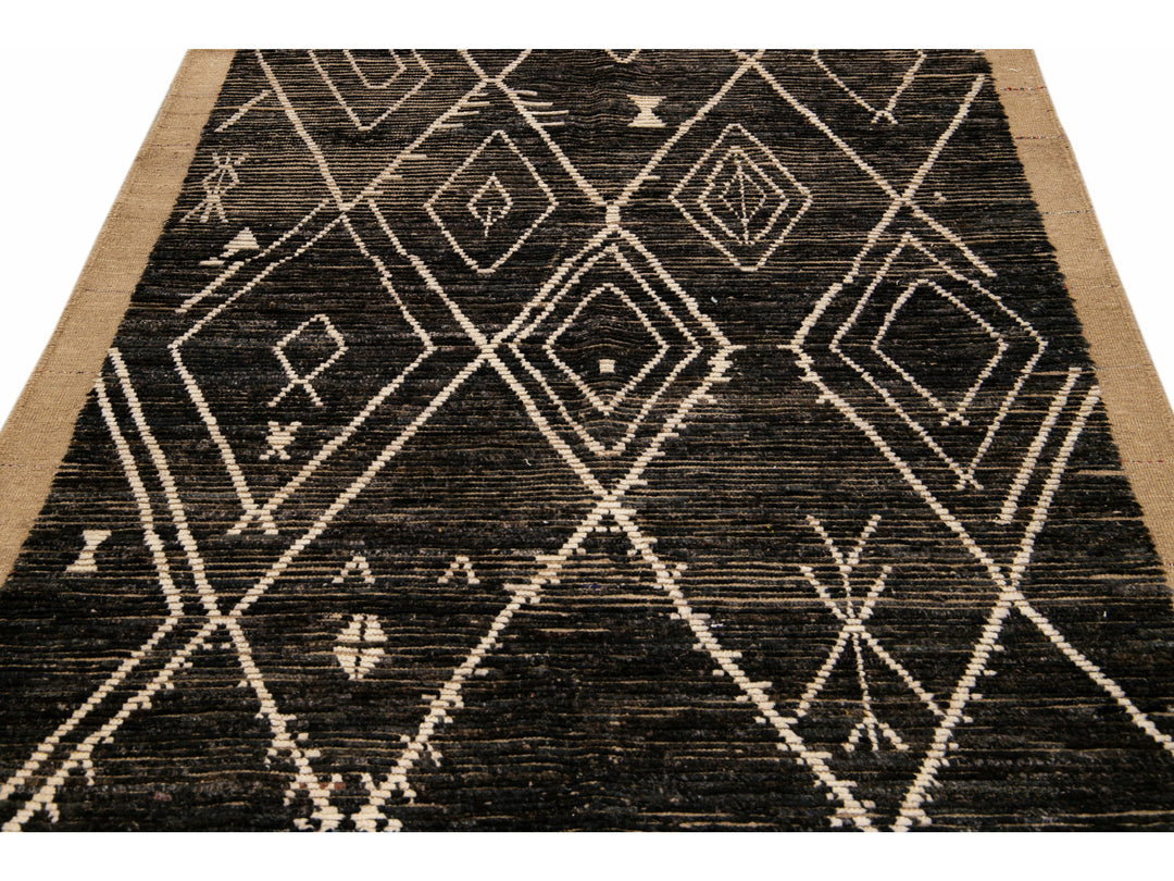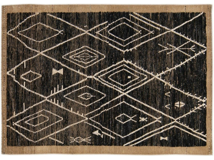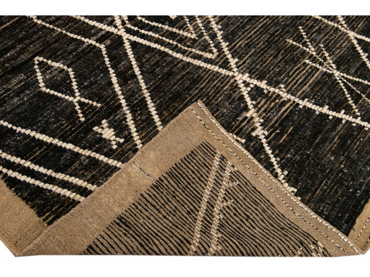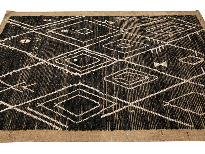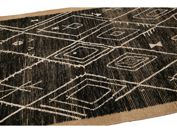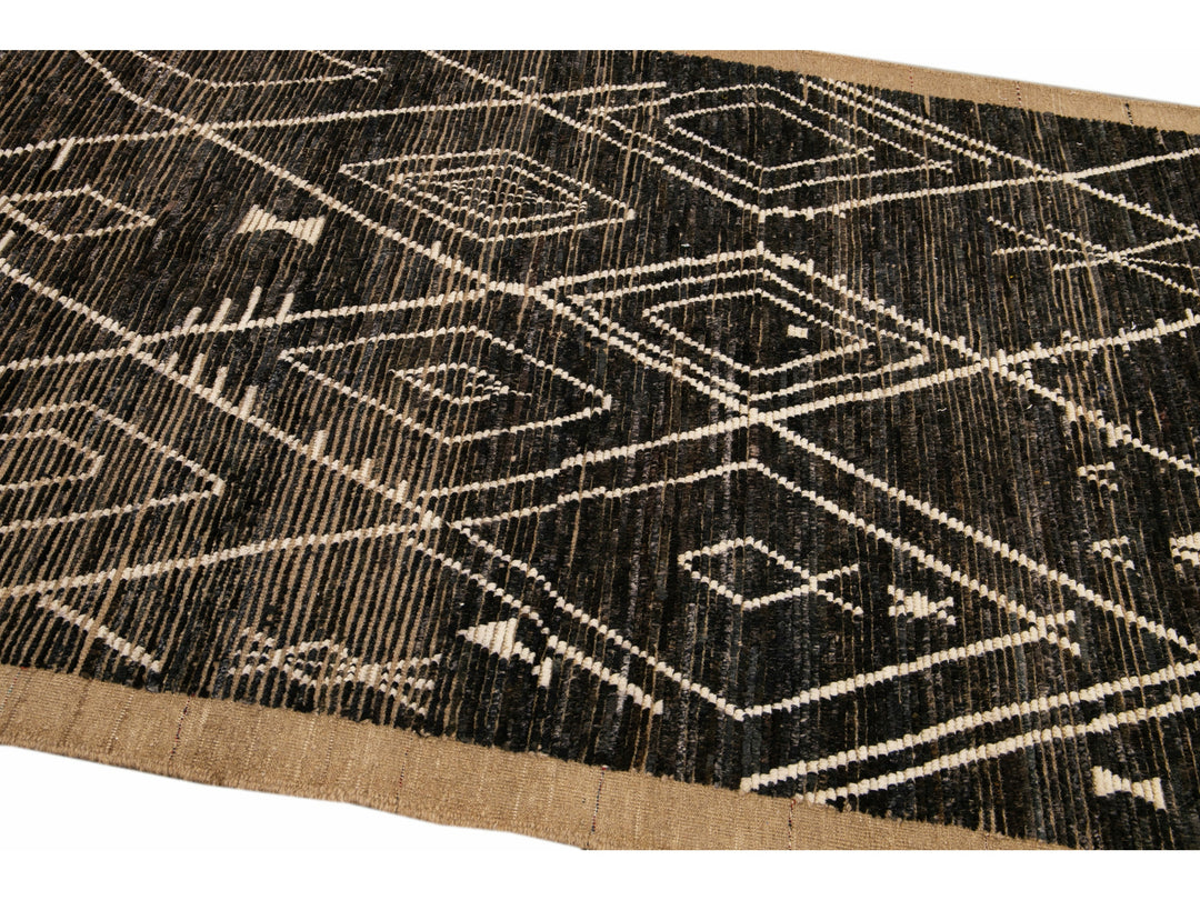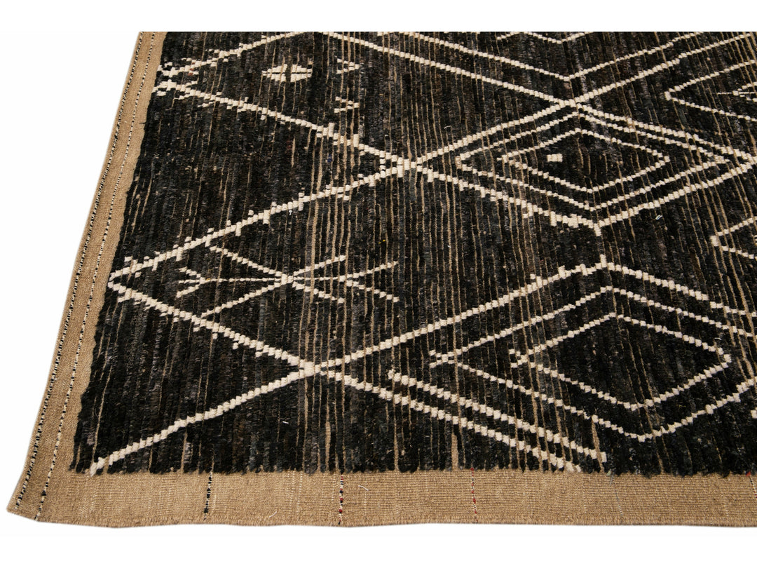 Modern Brown Moroccan Style Handmade Geometric Boho Wool Rug