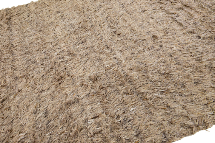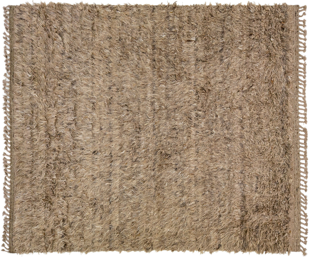 This elegant 8' 3" x 10' 3" Moroccan-style wool rug features a brown-hued field with a striking solid design. Handmade with expert craftsmanship, this exquisite Modern rug will add a sophisticated touch to your décor.