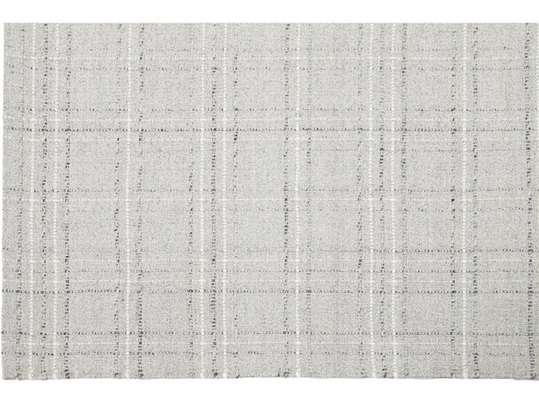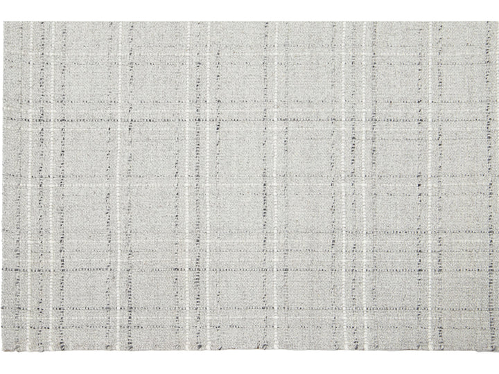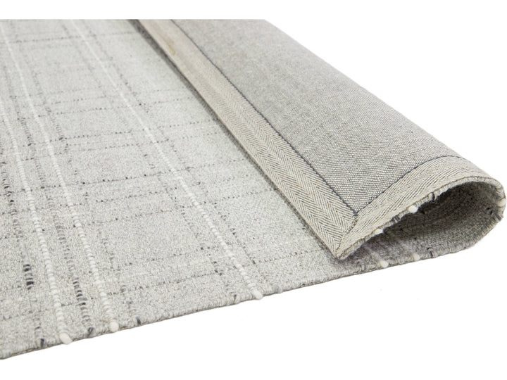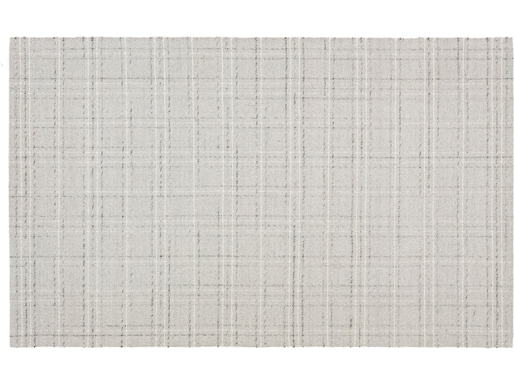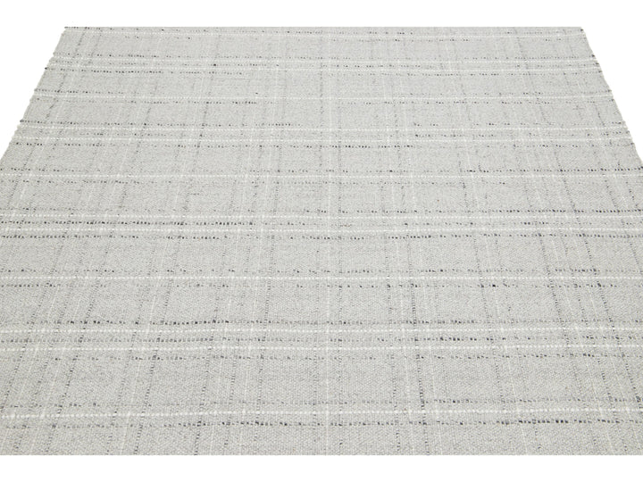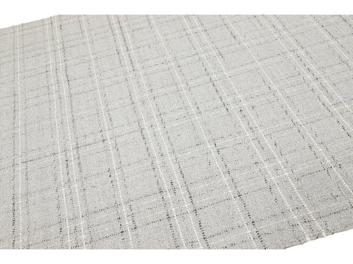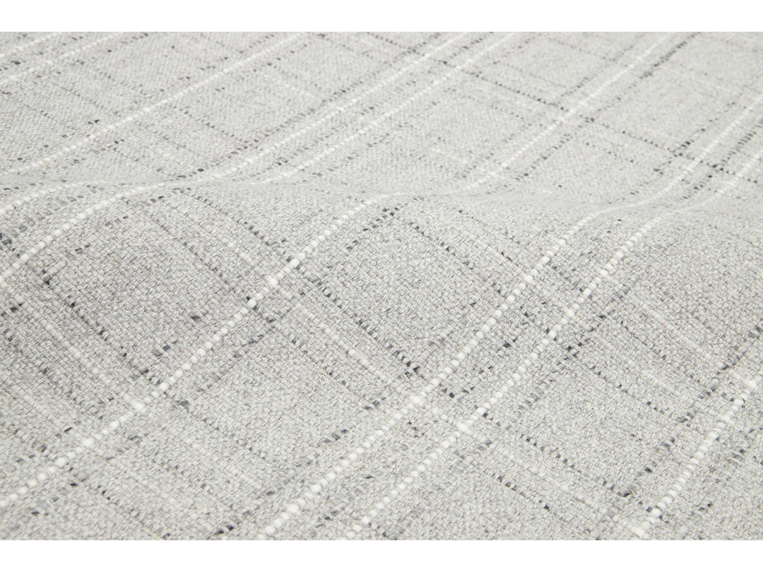 This is a beautiful kilim handmade wool rug with a beige field. This custom modern flatweave rug from our Nantucket collection has gray accents and a gorgeous, all-over geometric design. This rug measures 5' x 8'.