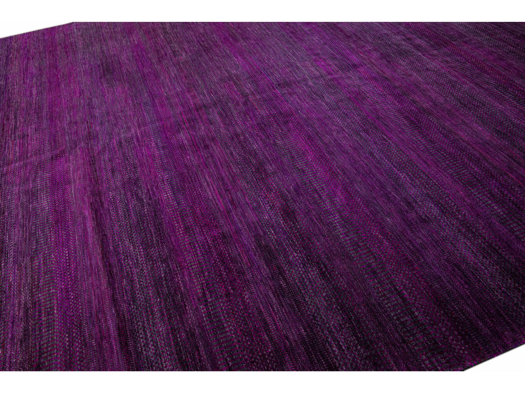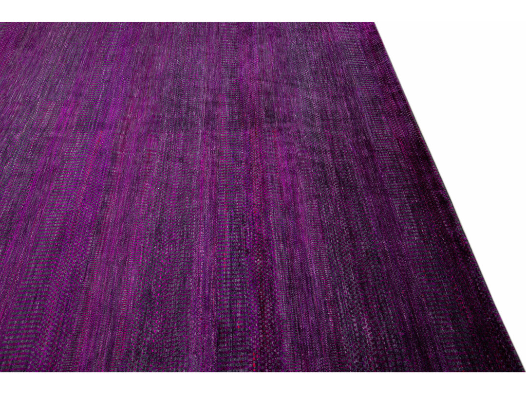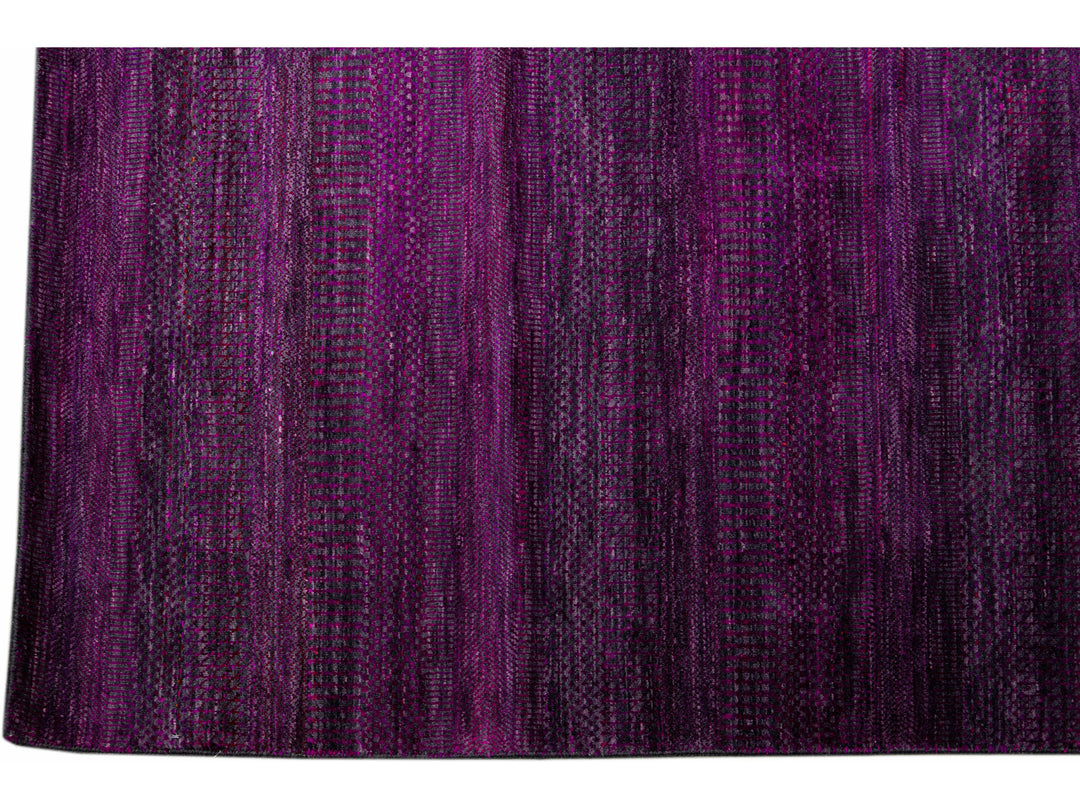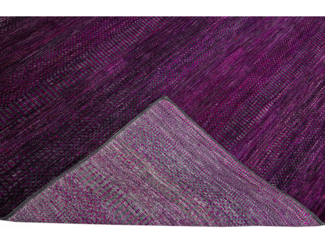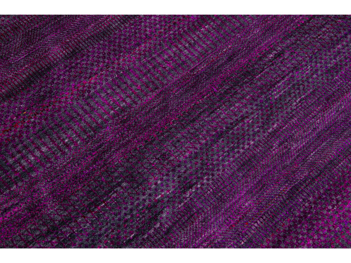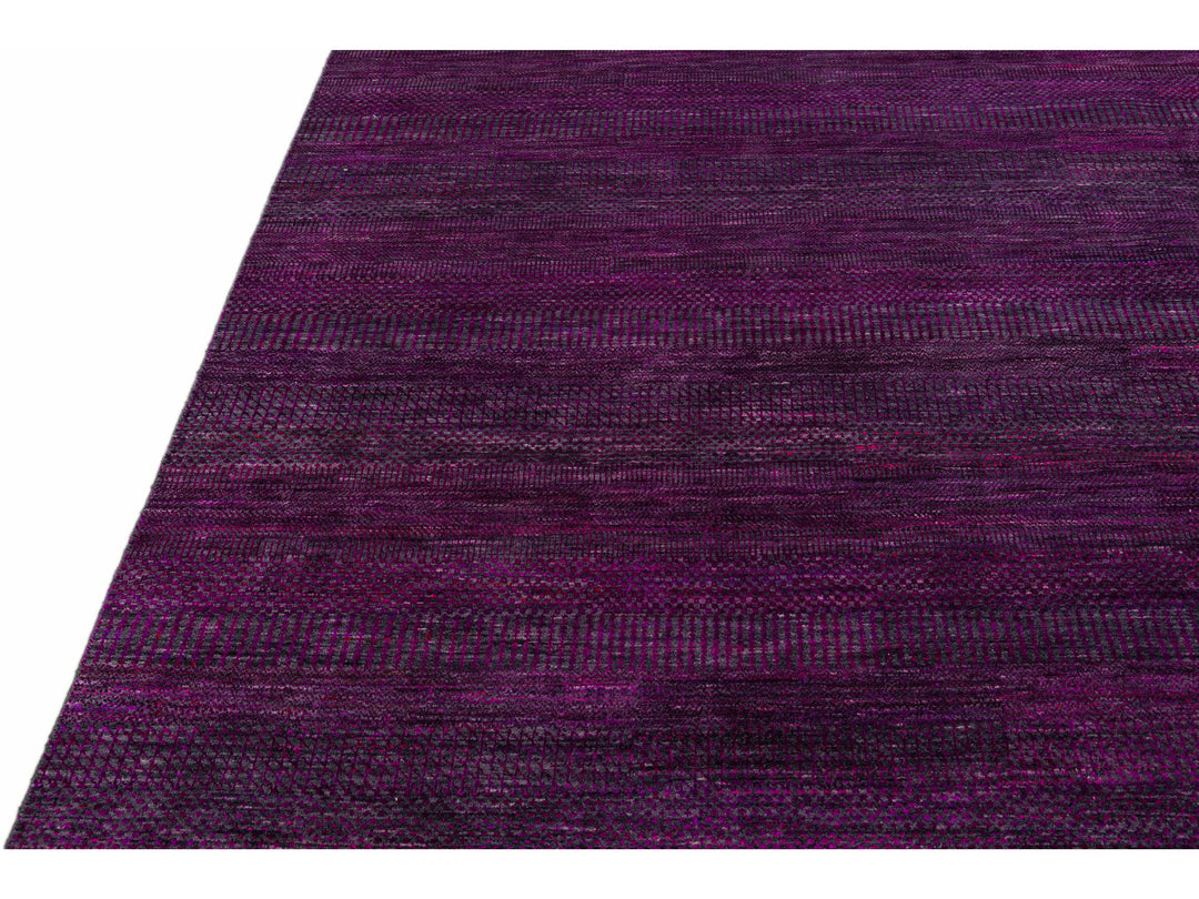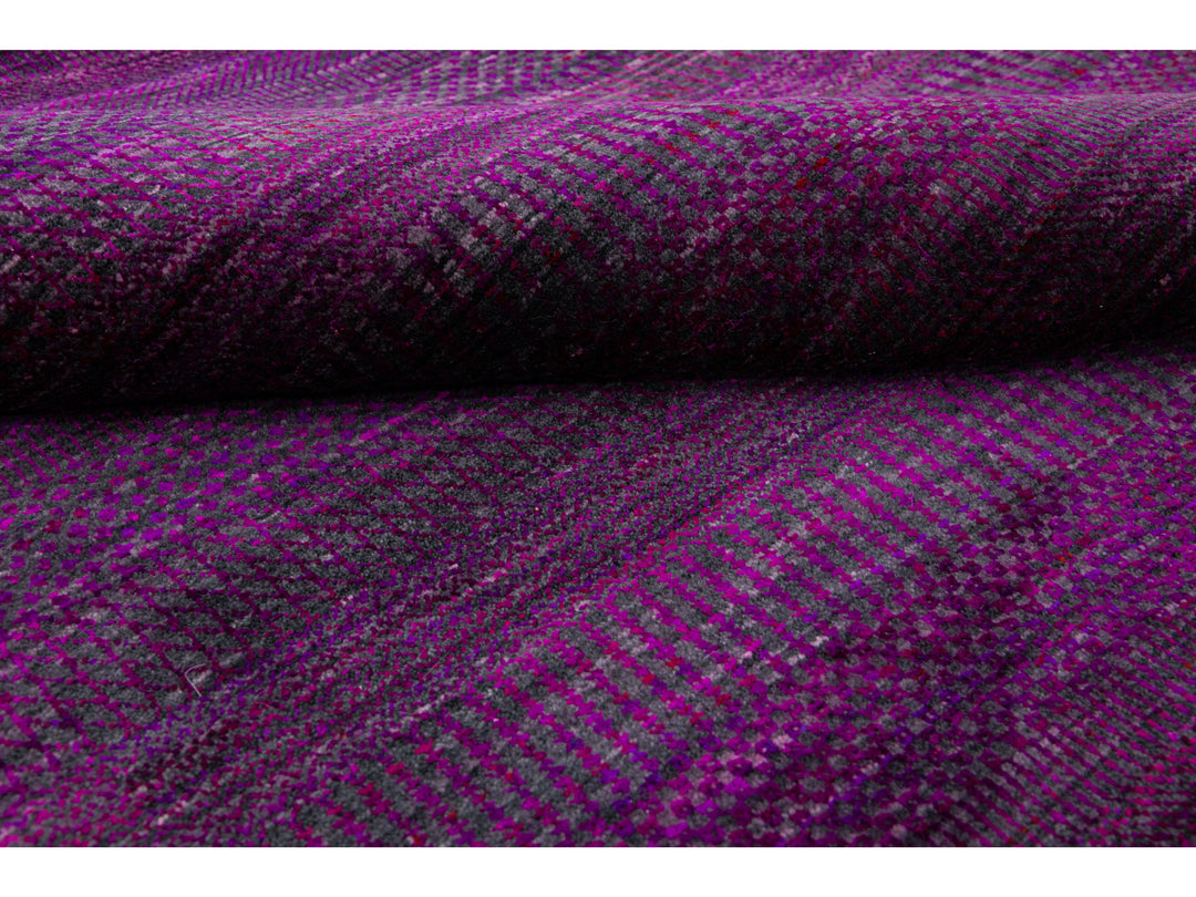 Beautiful Contemporary Savannah hand-knotted wool rug with a finely detailed purple field in an all-over geometric pattern design.