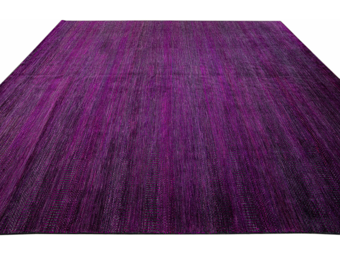 Purple Modern Savannah Handmade Geometric Square Wool Rug
