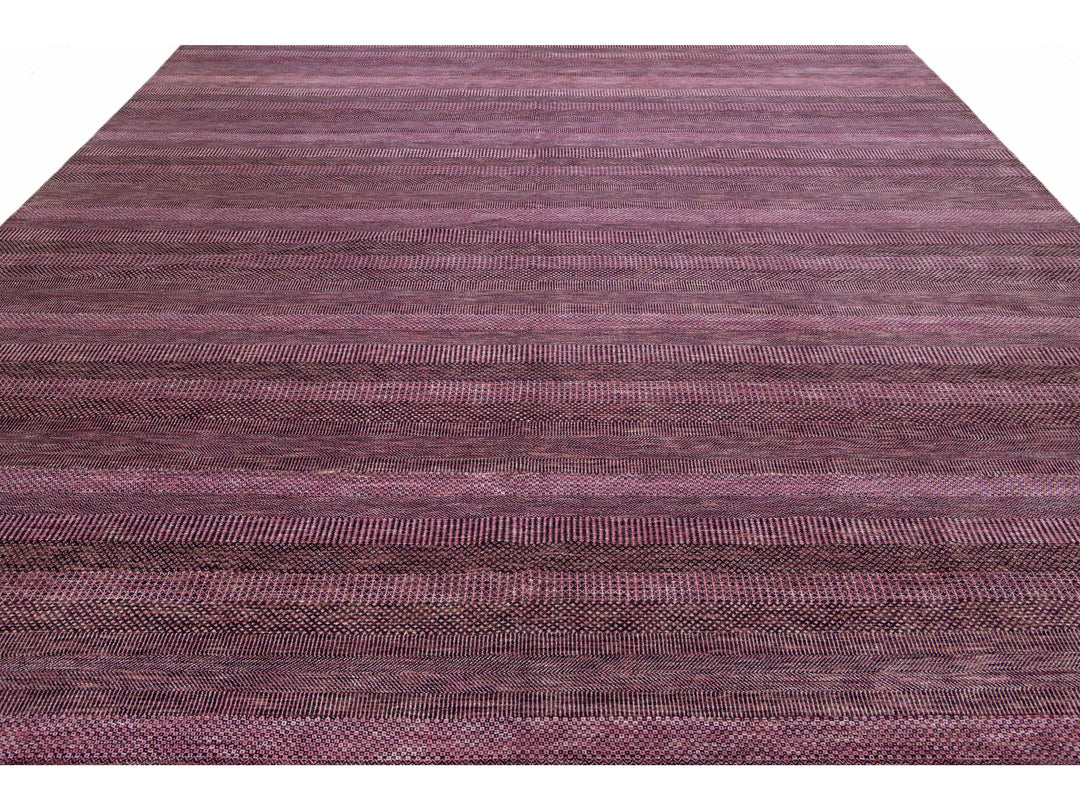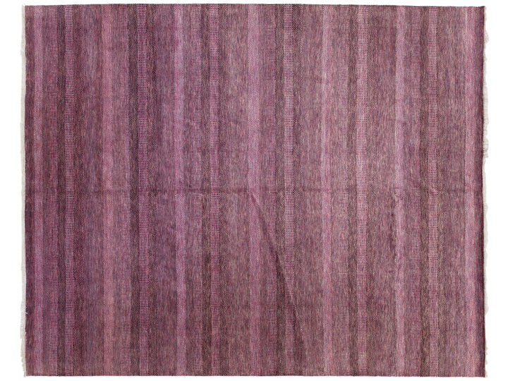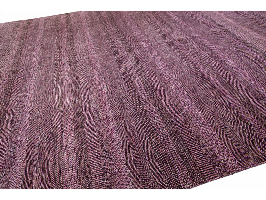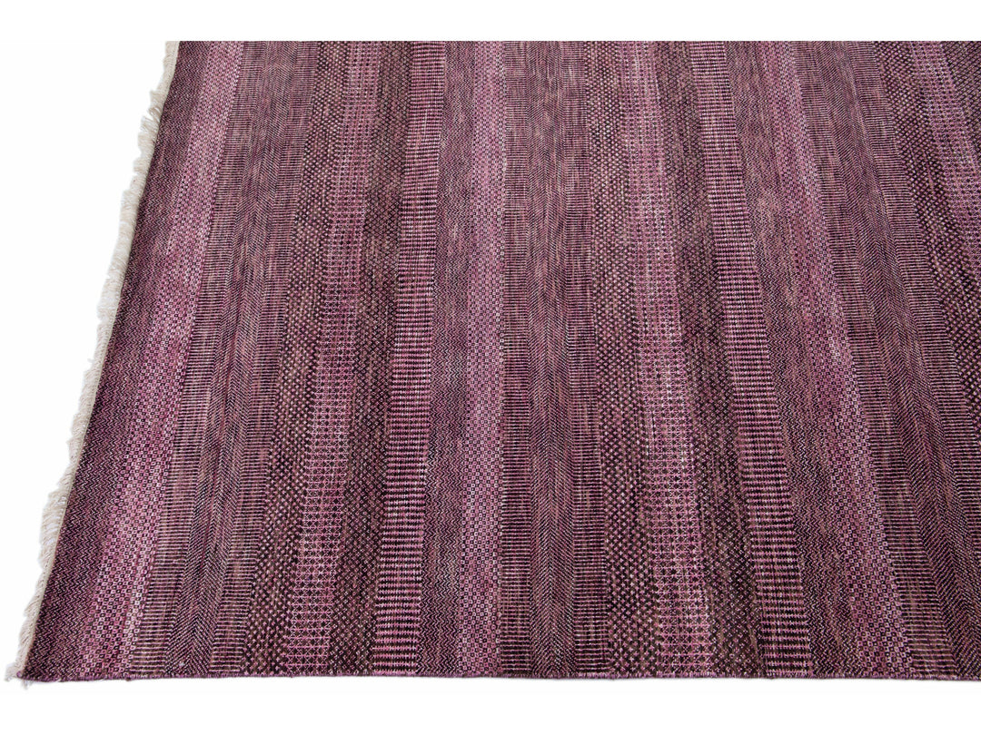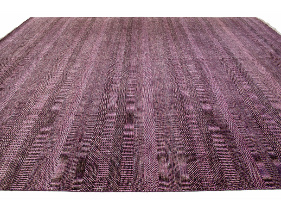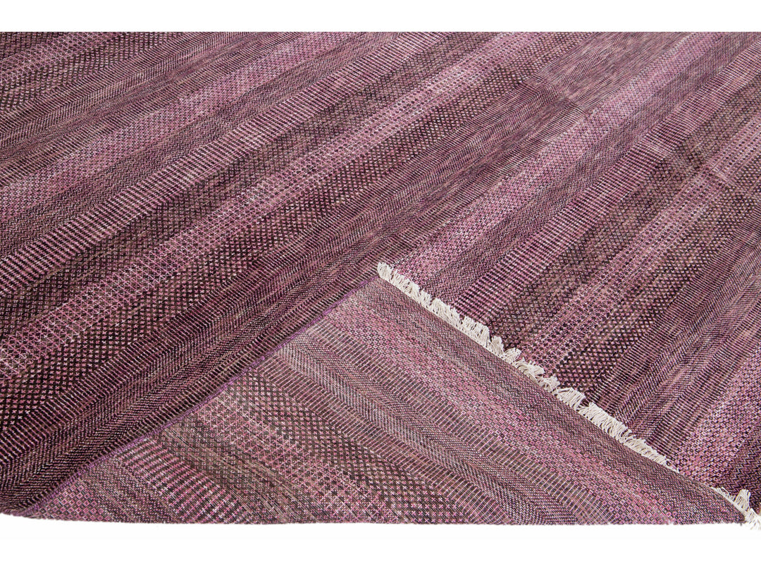 Modern Savannah Handmade Purple Wool Rug with Geometric Design