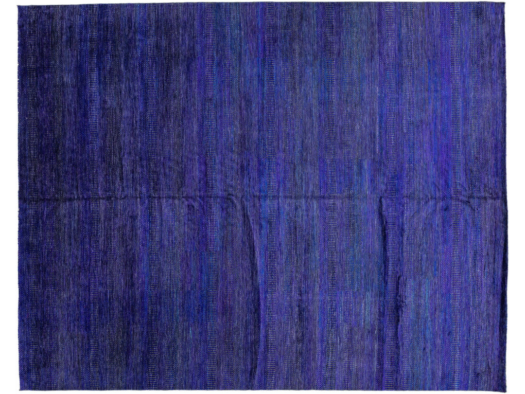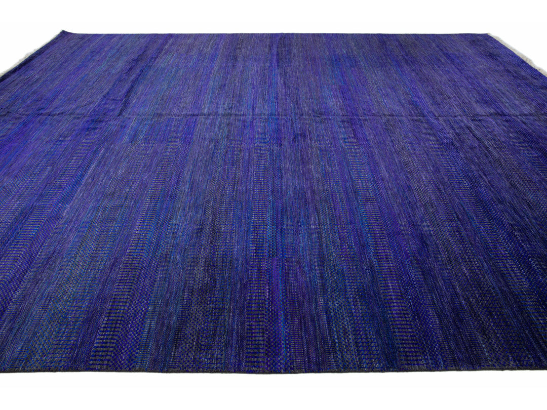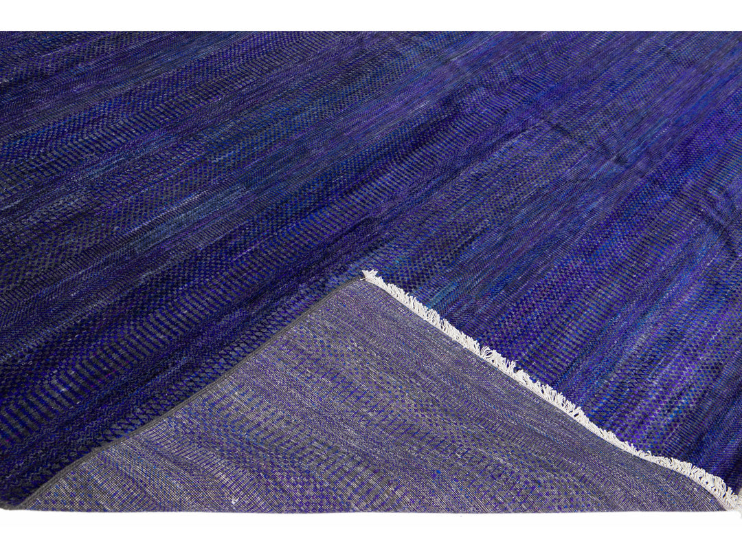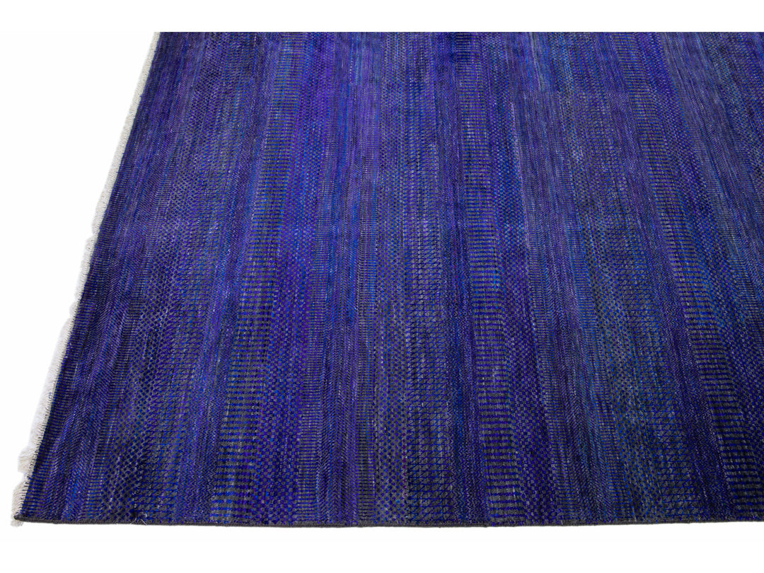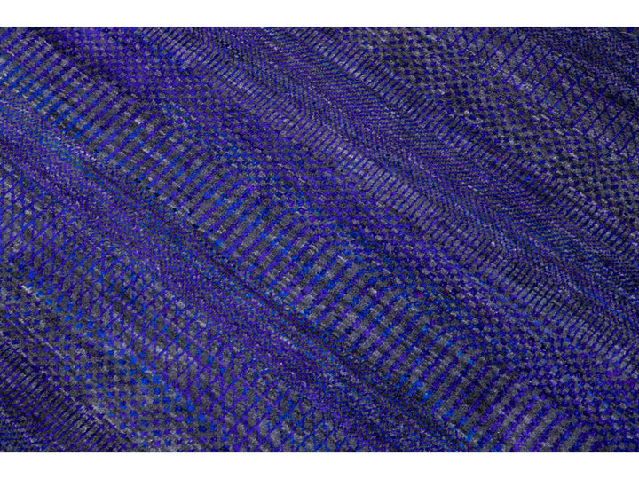 Beautiful Contemporary Savannah hand-knotted wool rug with a finely detailed blue, gray, and purple field in an all-over geometric pattern design.