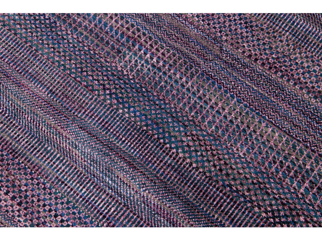 Beautiful Contemporary Savannah hand-knotted wool rug with a finely detailed blue, gray, and purple field in an all-over geometric pattern design.
