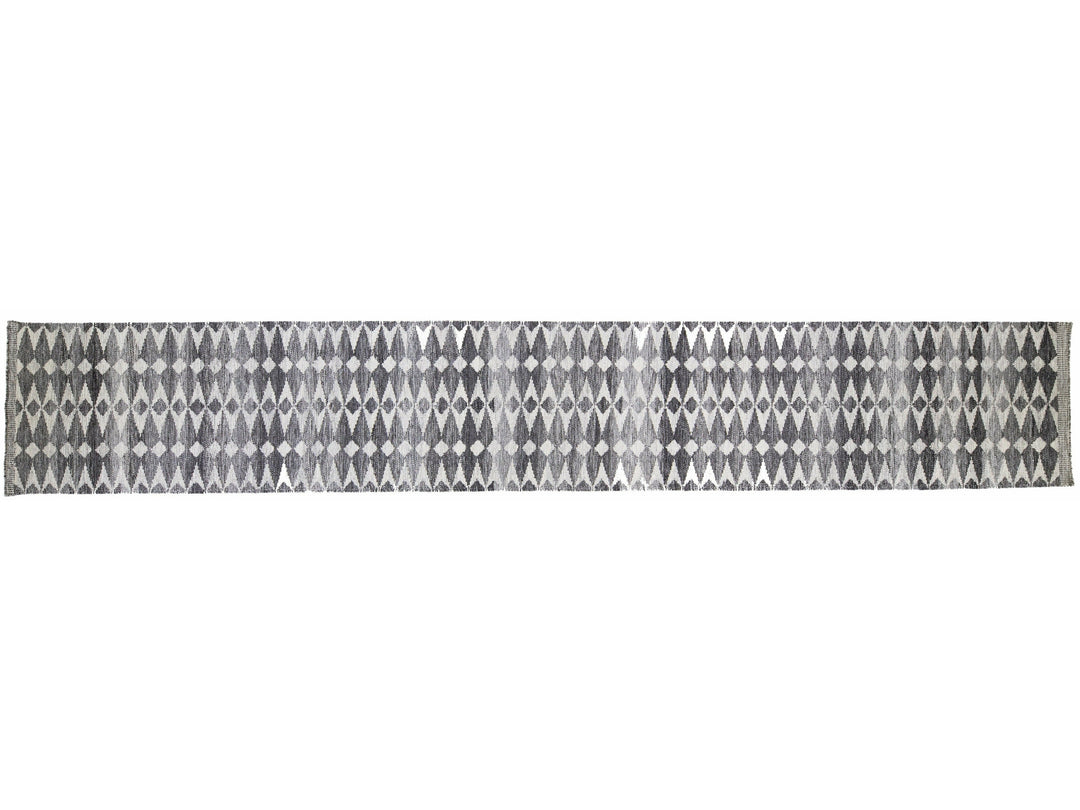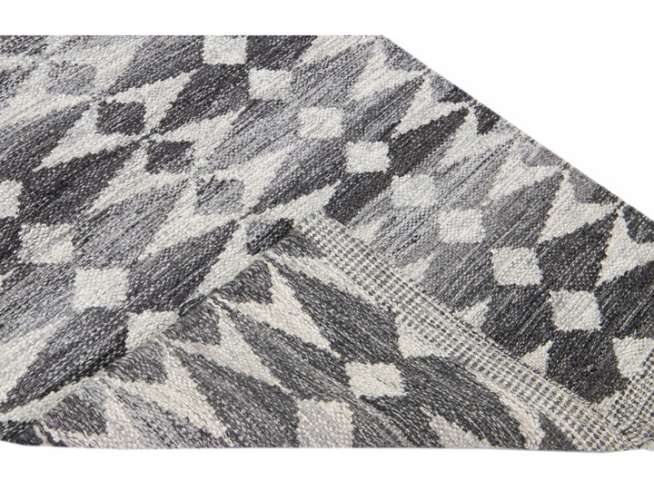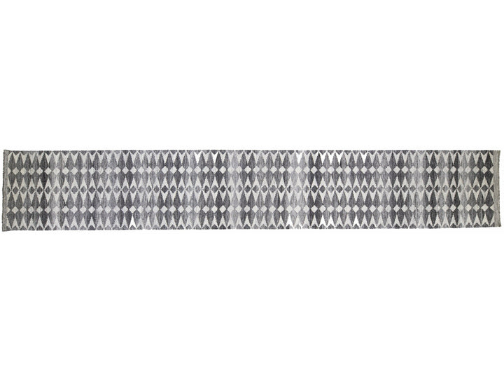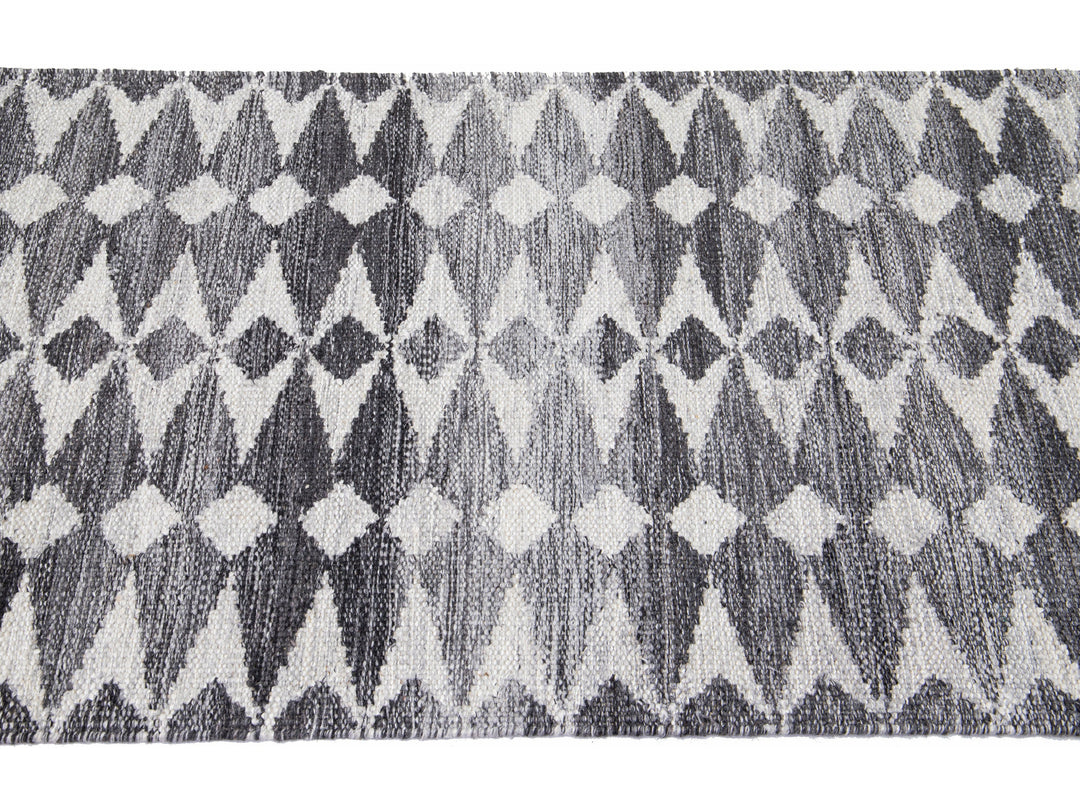 Modern Swedish Style Handmade Gray Wool Runner With Abstract Design