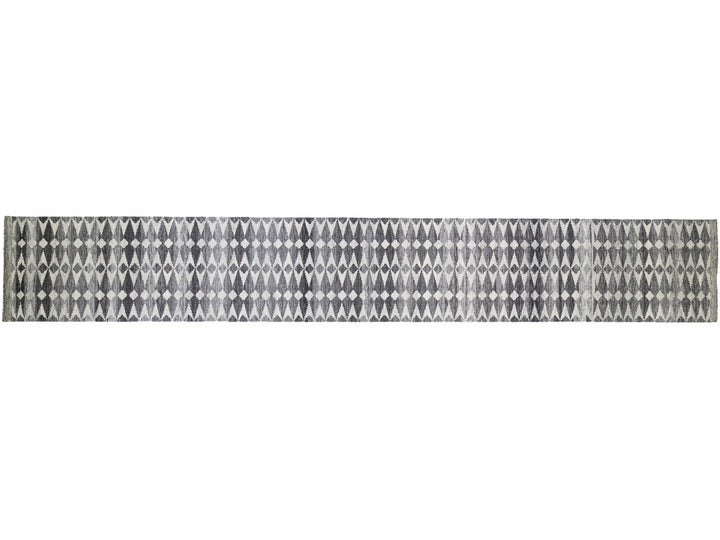 Gray Modern Swedish Style Handmade Abstract Designed Wool Runner