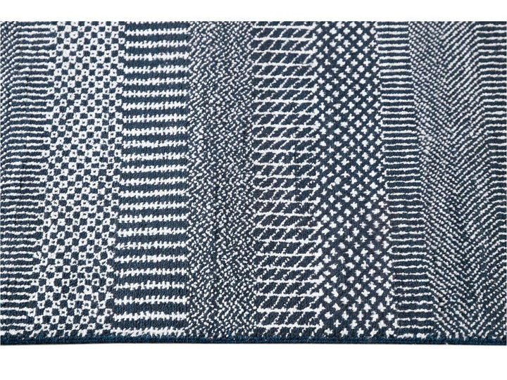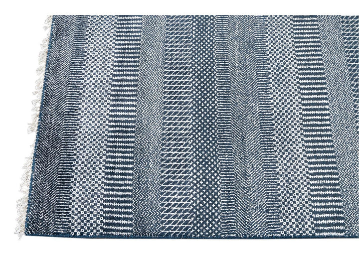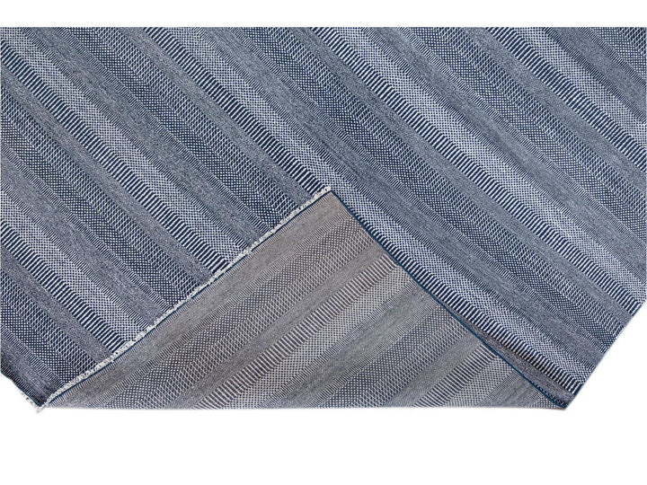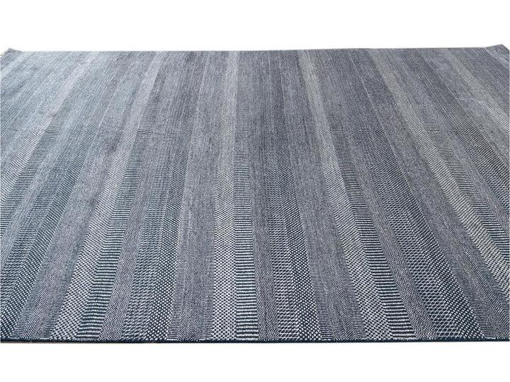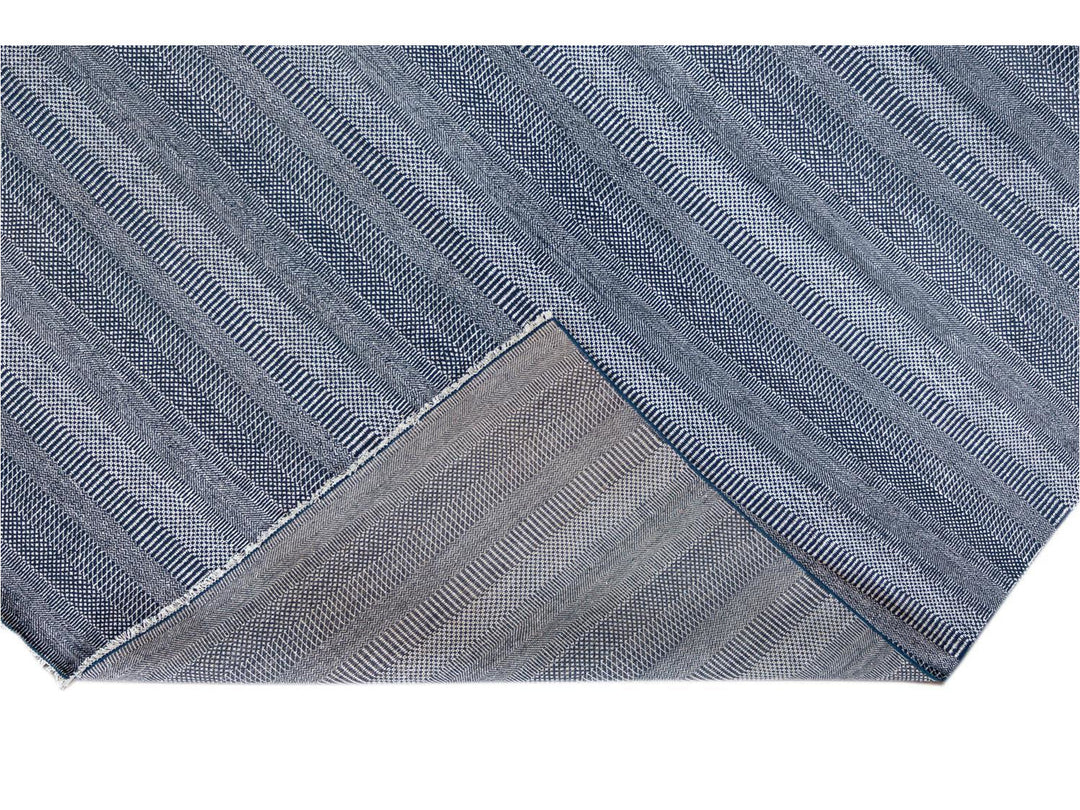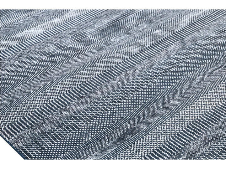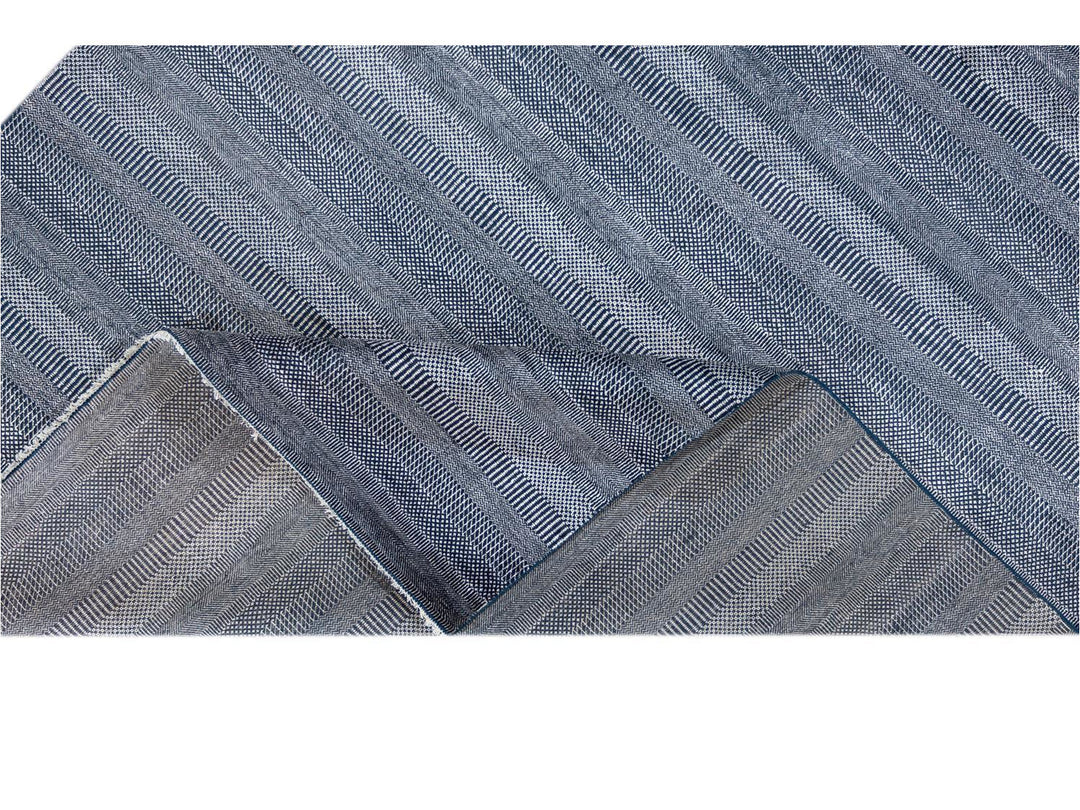 Beautiful contemporary transitional Savannah Hand-knotted Wool rug with a finely-detailed allover design resulting in a solid blue motif.